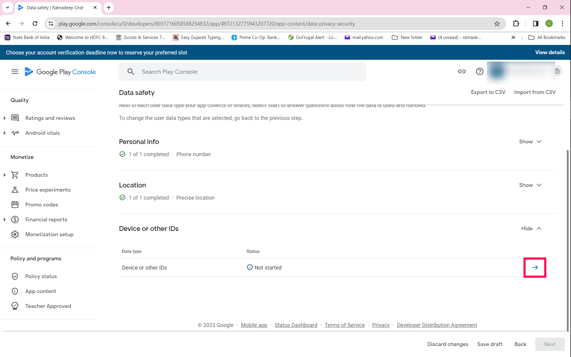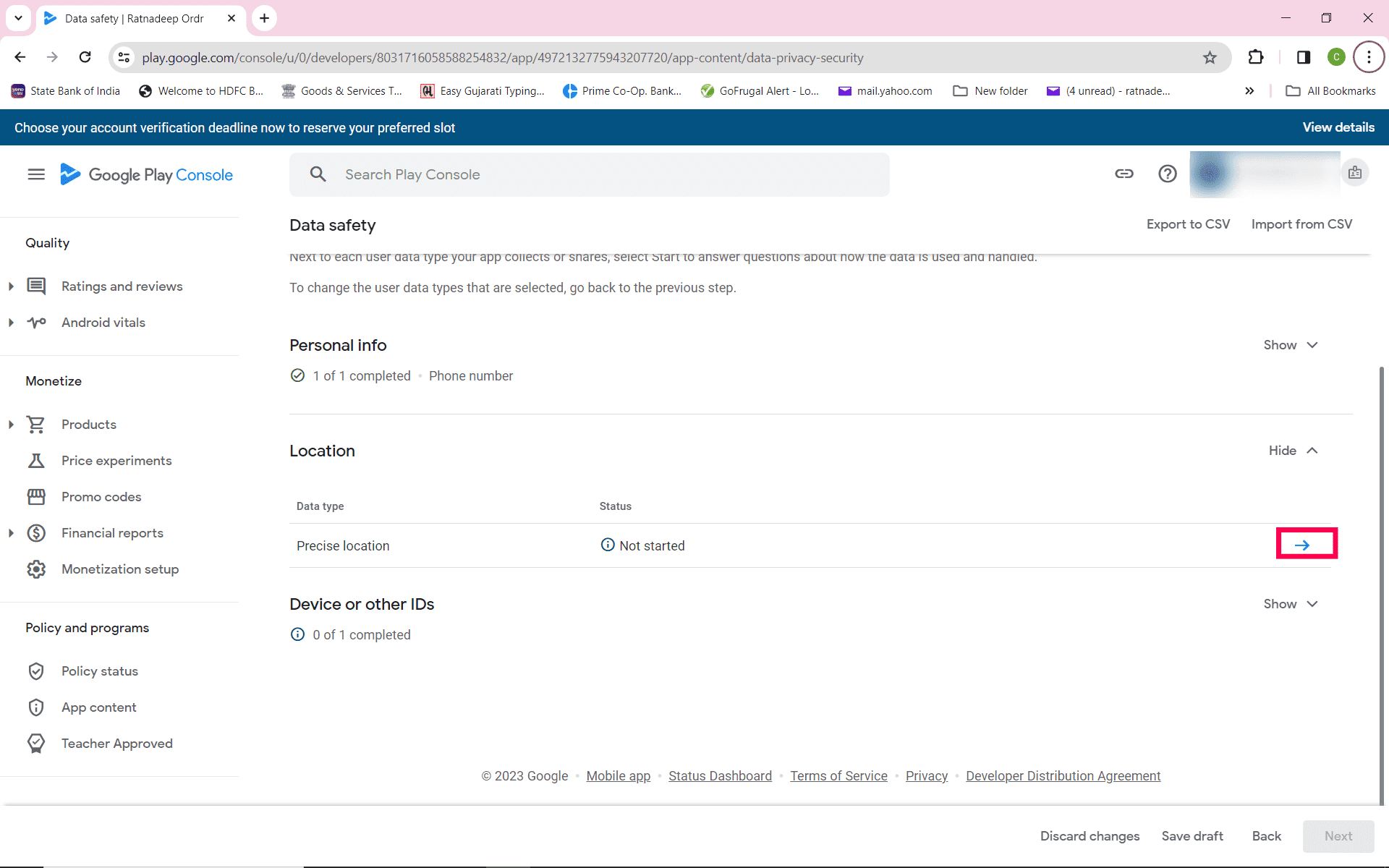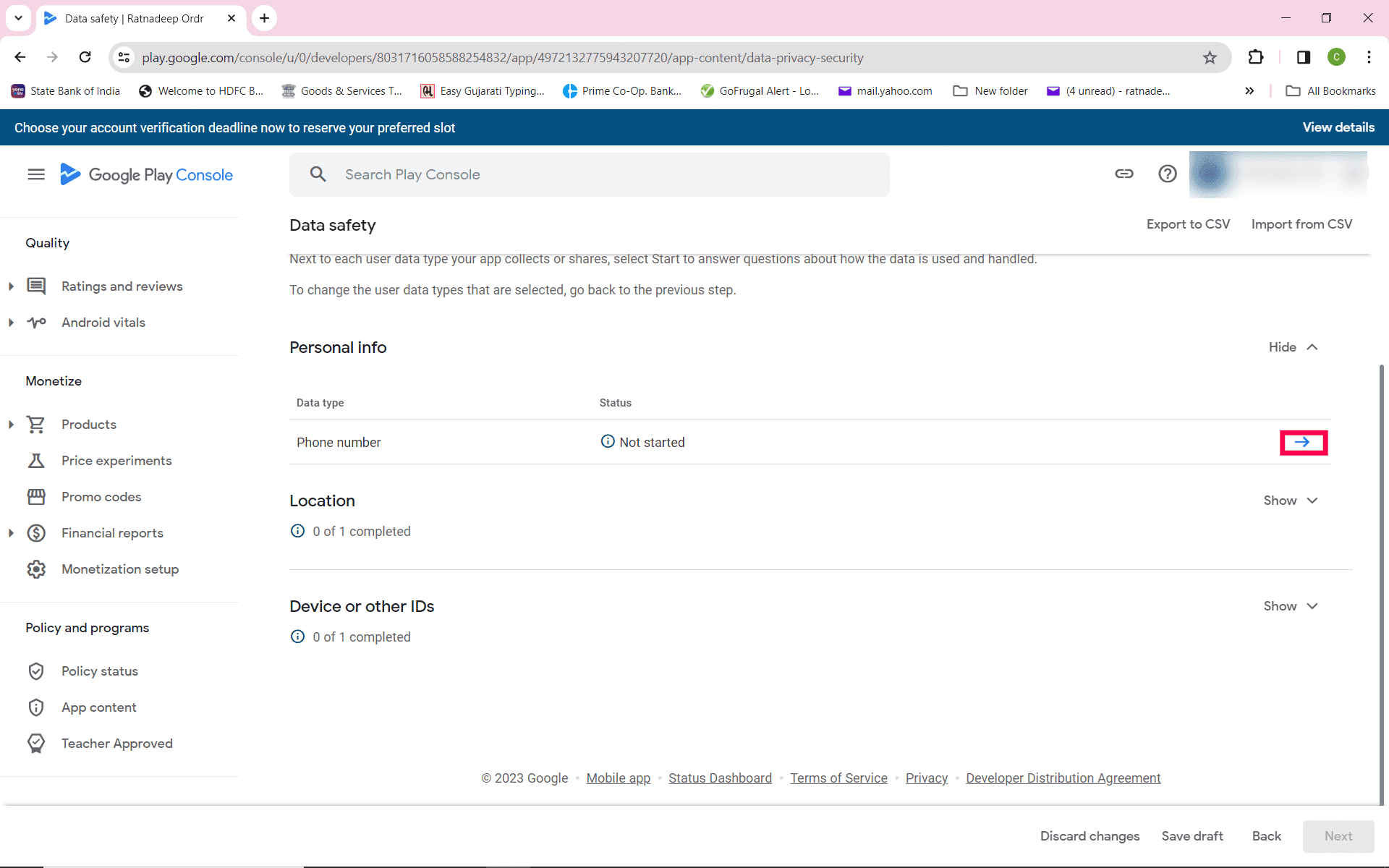 Step 1 : Click on data safety
