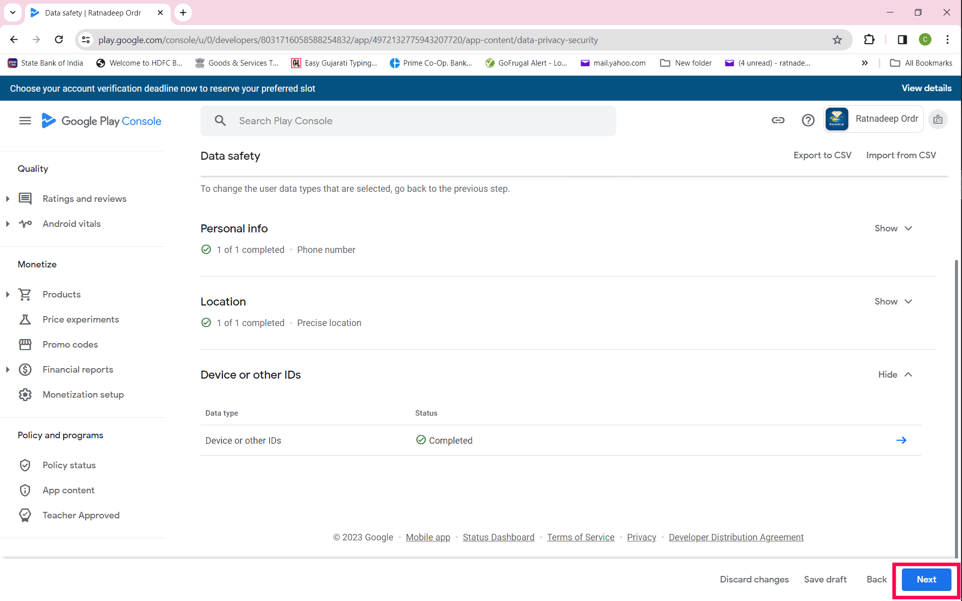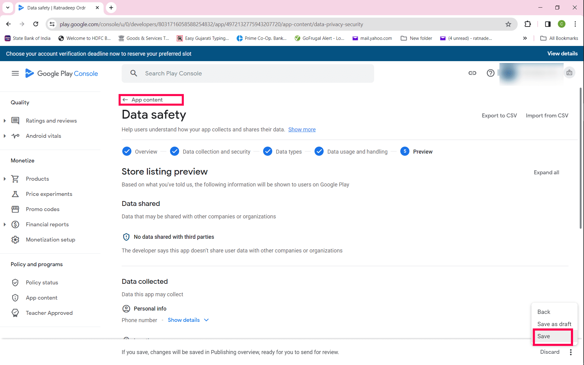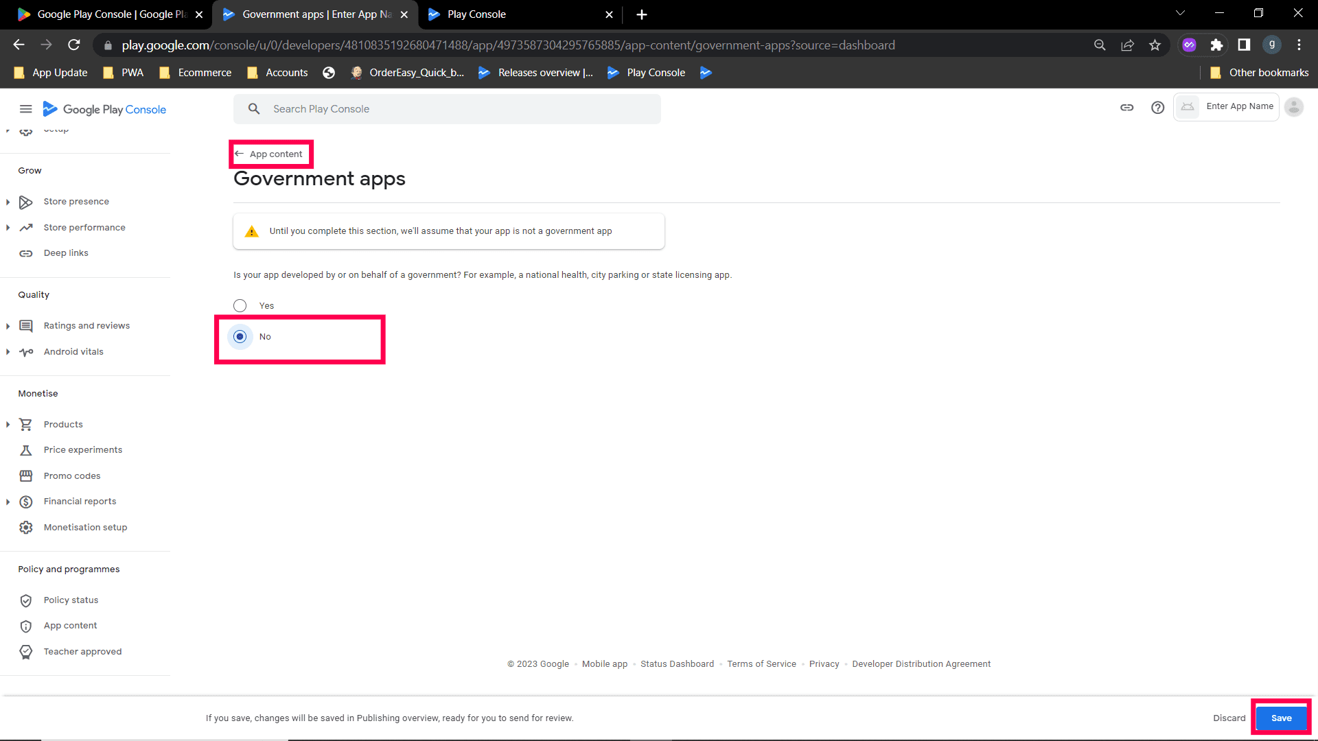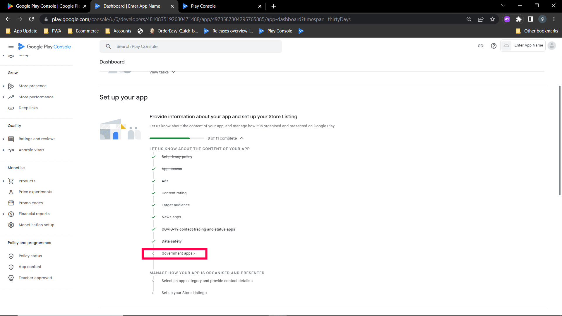 Step 18: After Data safety, click Government apps