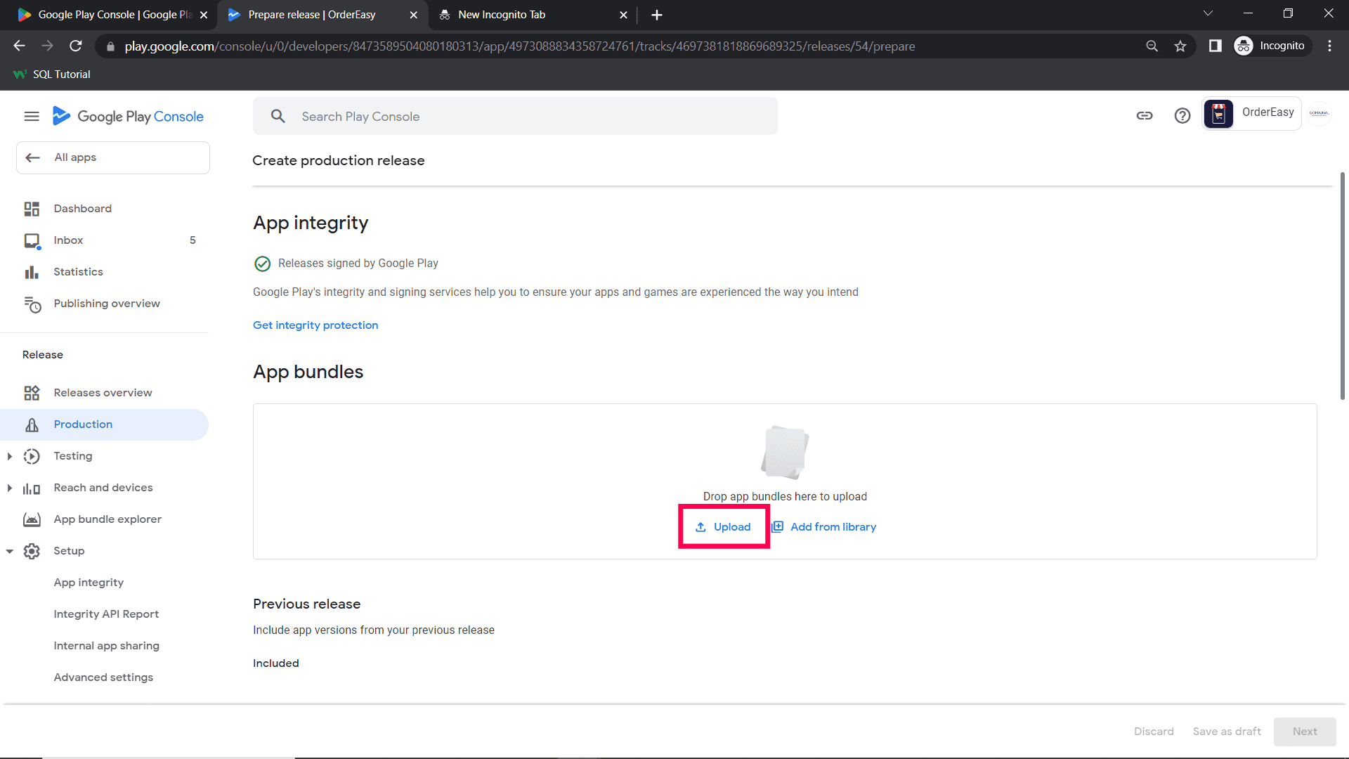 Step 4 : After entering into the release page, upload the .aab file*