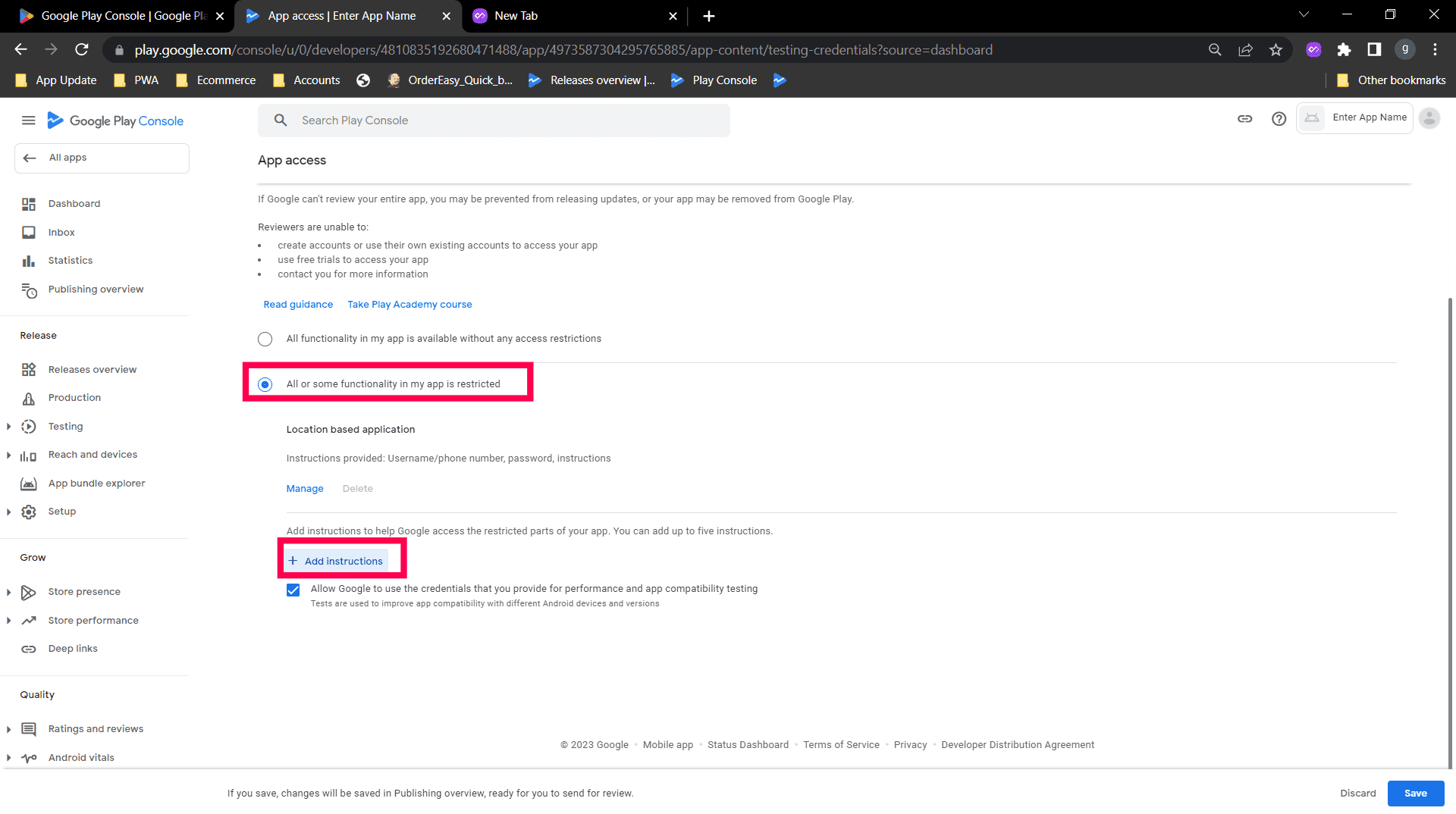 Step 5: Click all or some functionality is restricted and click add instruction, a new page will be open for adding the instructions
