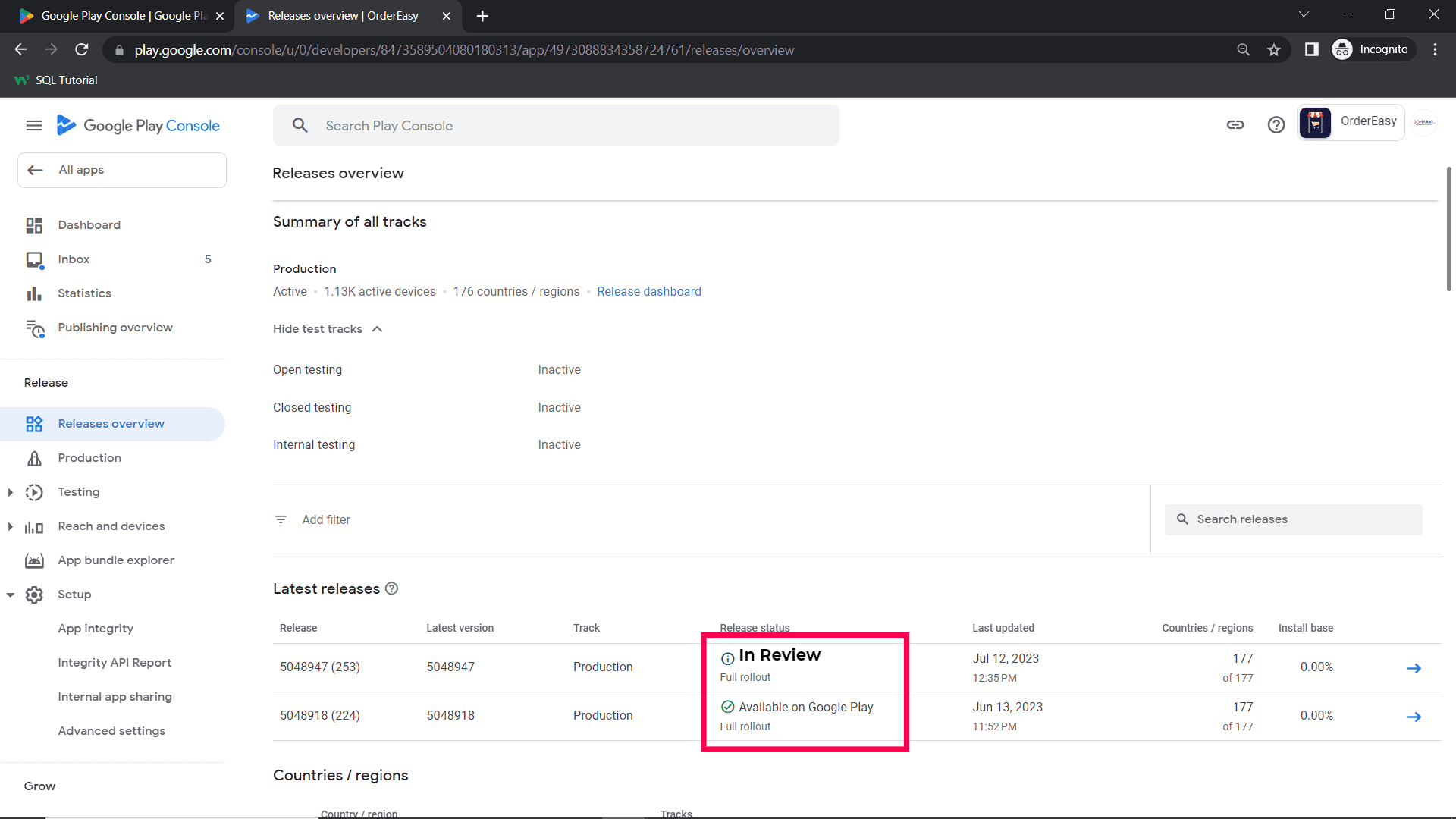 Step 10 : In Release Over View Page, the status will be "In review" if successfully send