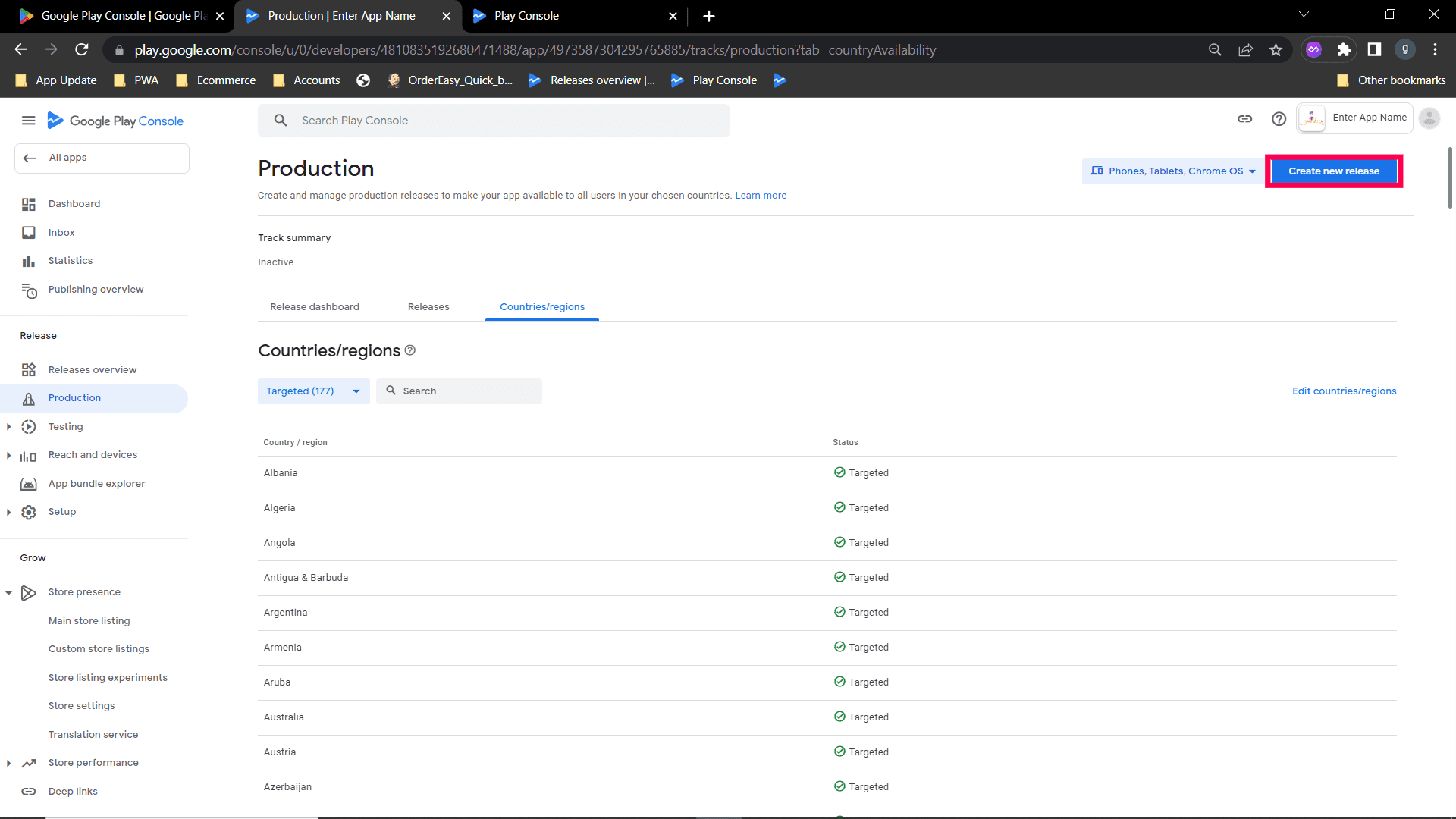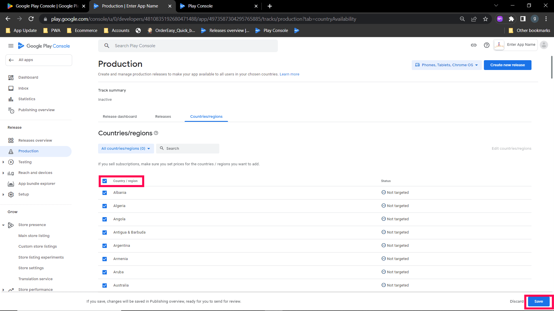 Step 3 : After selecting the country, click on save. Now click on "Create New Release"