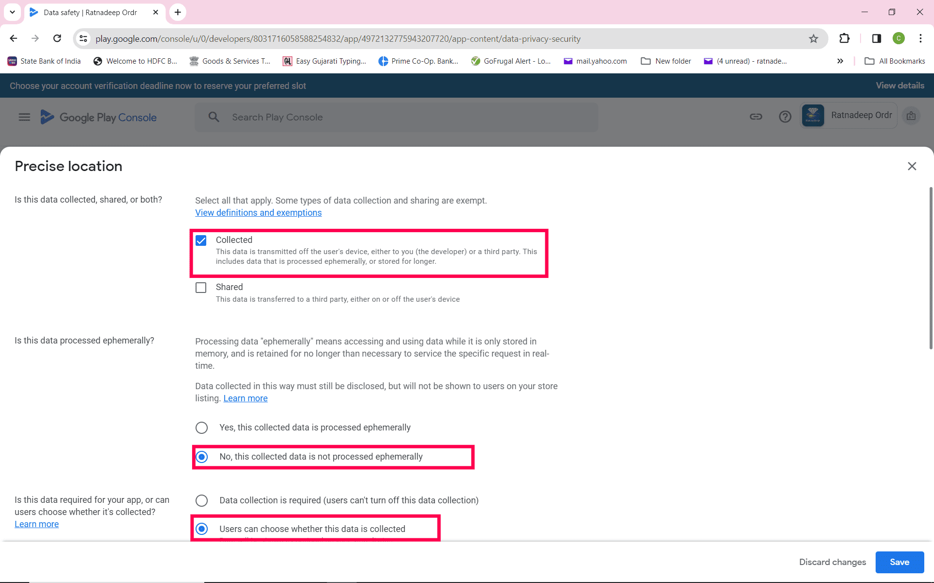 Is this data required for your app, or can users choose whether it's collected? -- Users can choose whether this data is collected