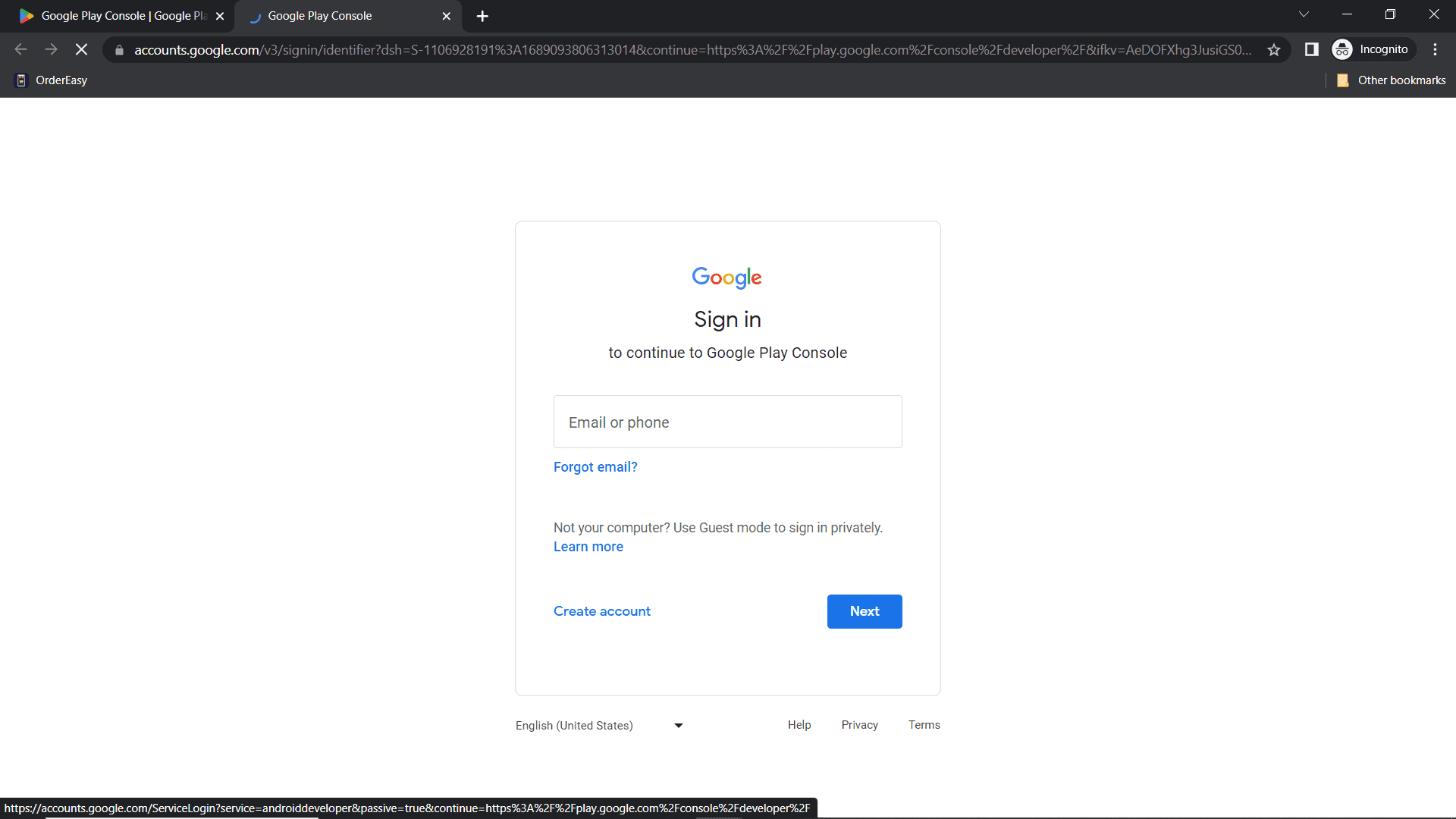 Step 1: Once Play-console account creation and identity verification is done then, login to your play console using the admin mail Id.