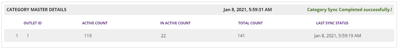 A) It shows the date & time & status the 'Category sync' was last performed.