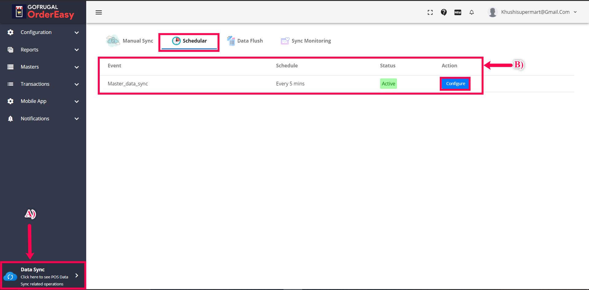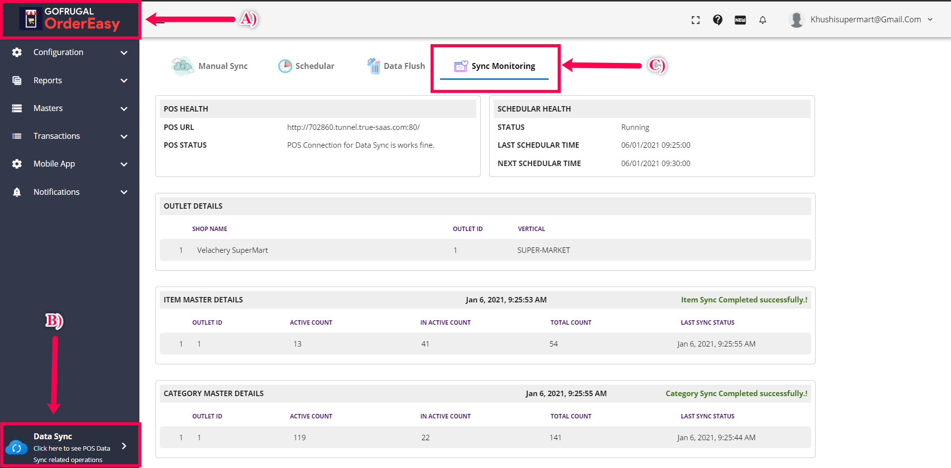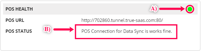 B) Status in the box says "POS Connection for Data Sync is working fine."