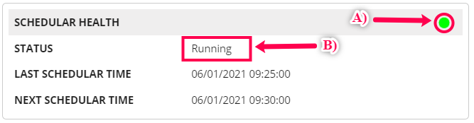A) The 'SCHEDULER STATUS' indicator is blinking 'Green'.