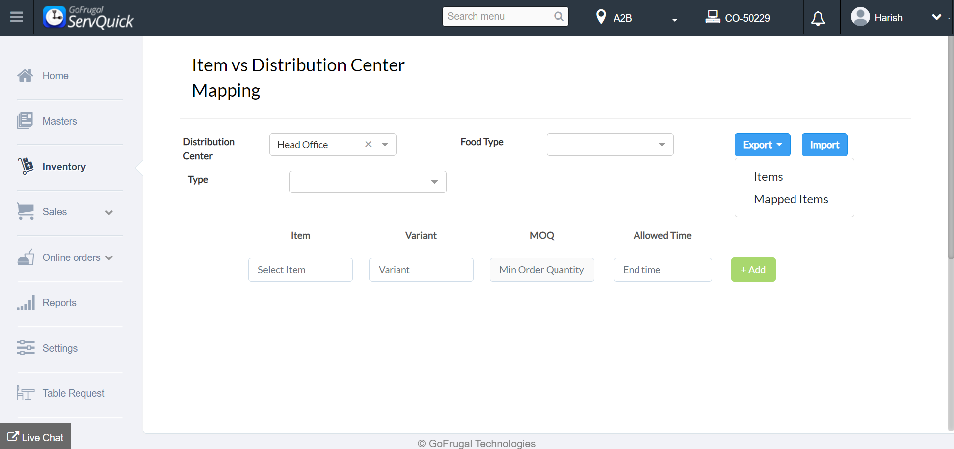 Purpose :- Cluster item mapping used for mapping the each items with Minimum Quantity and allowed time to raise the purchase order from franchise and Branch.The items which are all mapped in the cluster mapping screen those items will only be visible in the franchise and branch.