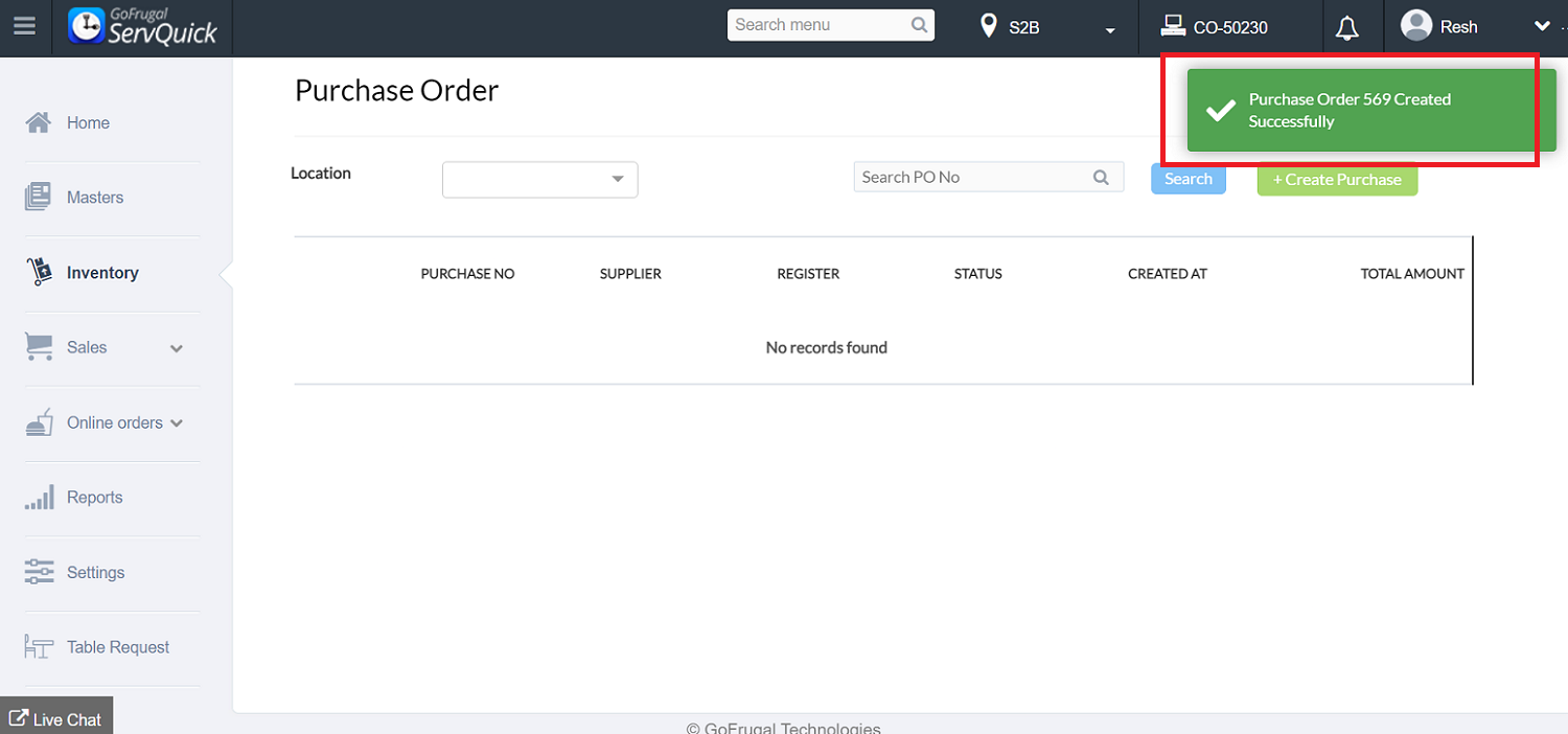 Step 1:Creating the purchase order in one of the franchise location after cut off time.