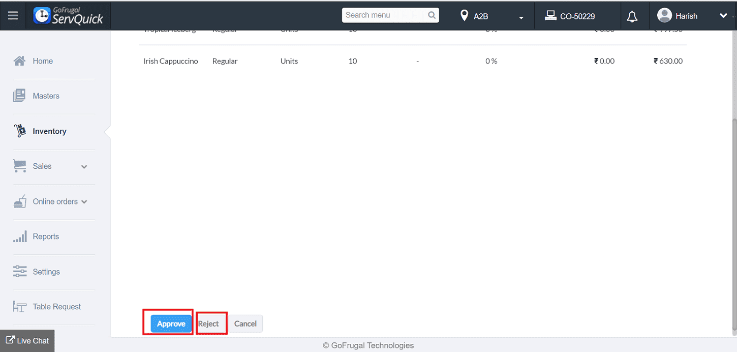 After checking the details , Now can approve or Reject or partial the purchase order.