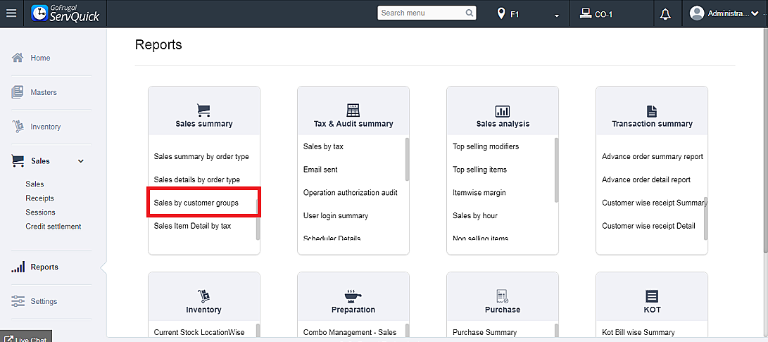 Step 5: The report can be viewed for the customer group under Sales summary