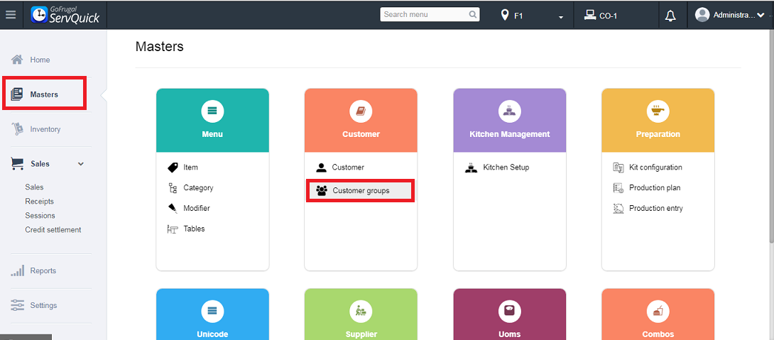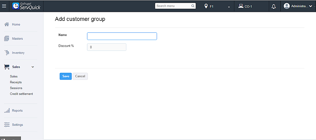Step1: Go to Masters->Customer Groups