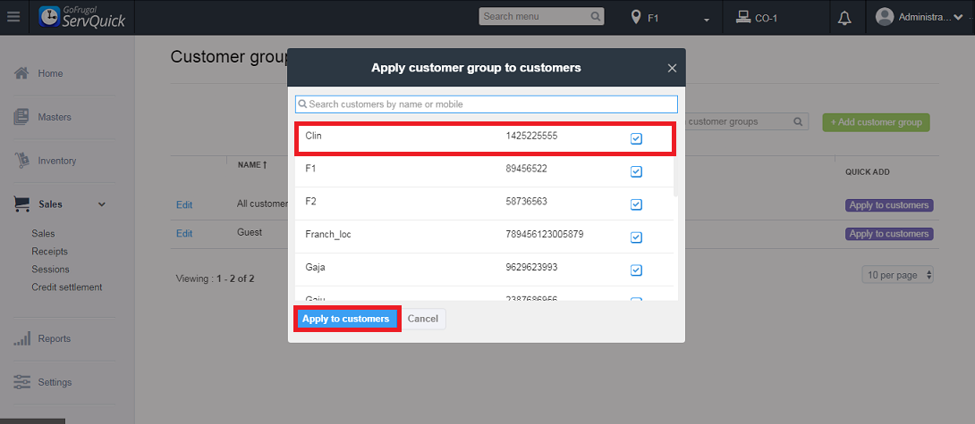 Step 3: Apply the discount to the customers in the respective group by choosing the customer and clicking on Apply to customers
