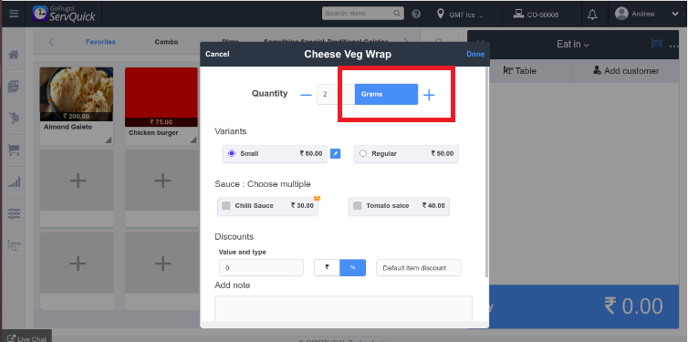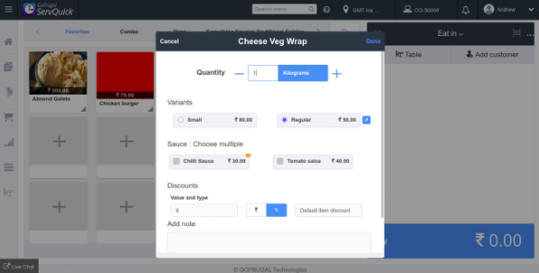 Step 4: The item will get added to the cart and can proceed with the billing