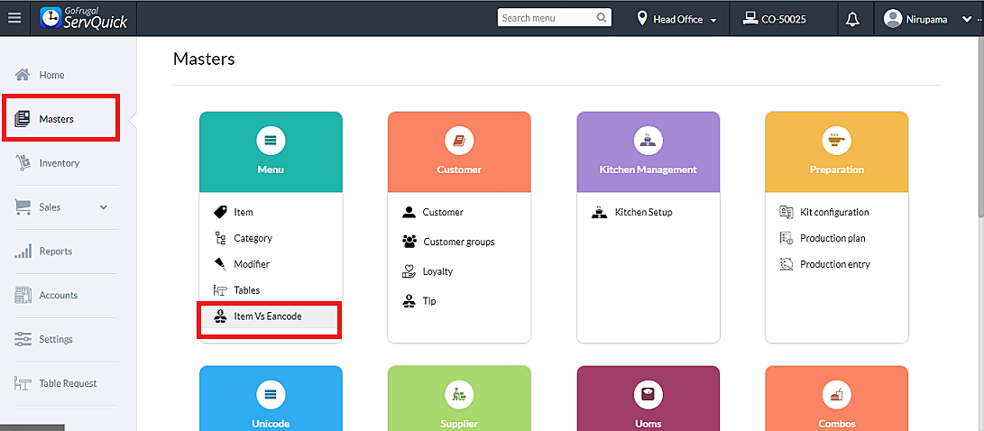 Step 1: Go to Masters->Menu->Item v/s EAN code