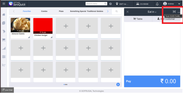 In the Sales bill screen the item can be added to the cart by scanning the Ean code can for the item.