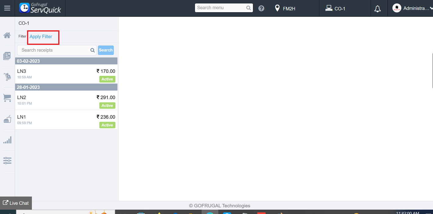 Step 2: After Enabled the Configuration, Receipt screen will show the option of "Apply Filter"