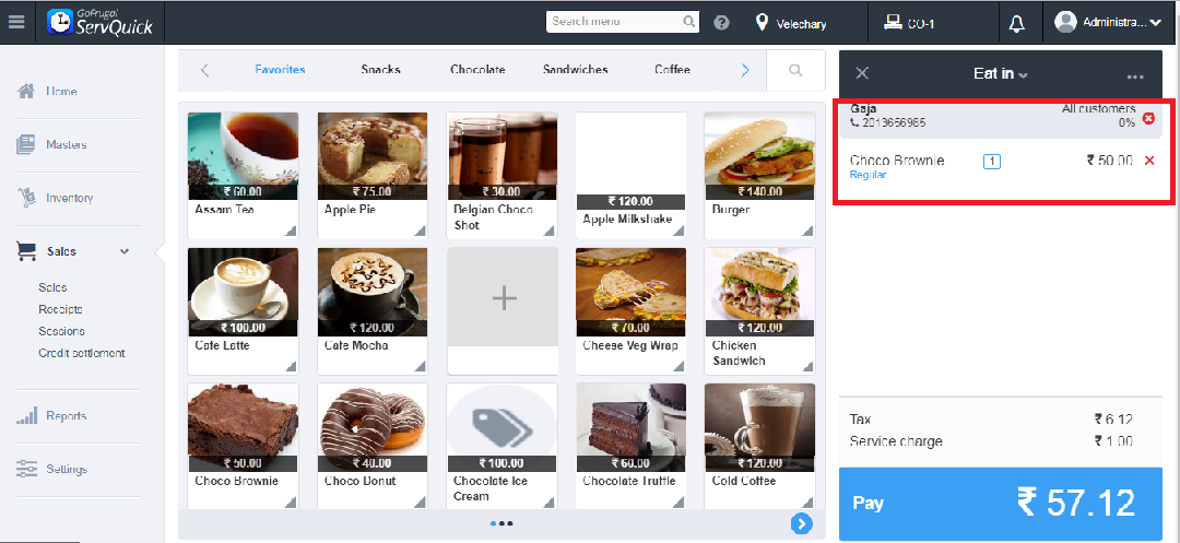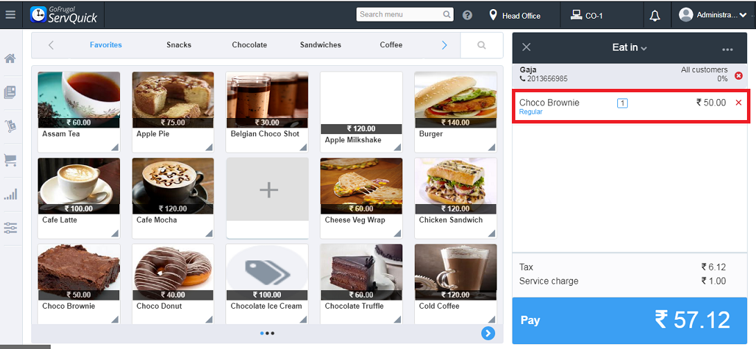 Step 3: Choose the Item. For eg. I have chosen Choco Brownie.