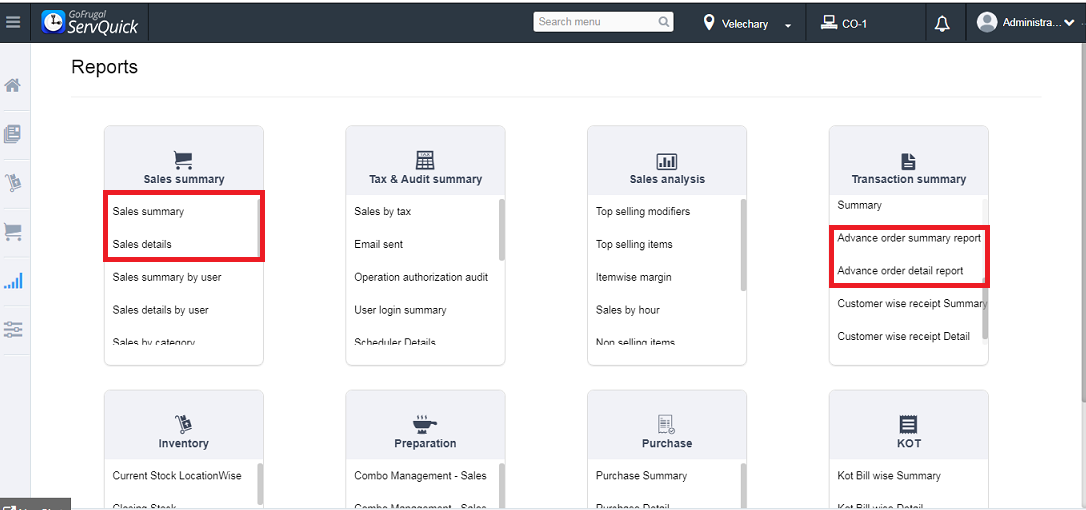 Step 12 : The Advance and the Sales done can be viewed under Sales summary and Transaction summary reports