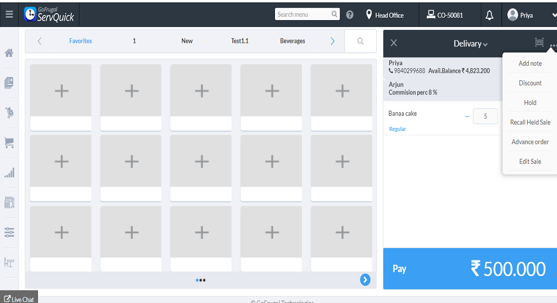 Step 3: Now go to Sale and create a advance order by selecting the customer and add items to cart and click on Advance order from more option, Fill in the relevant details and thus the advance order is created