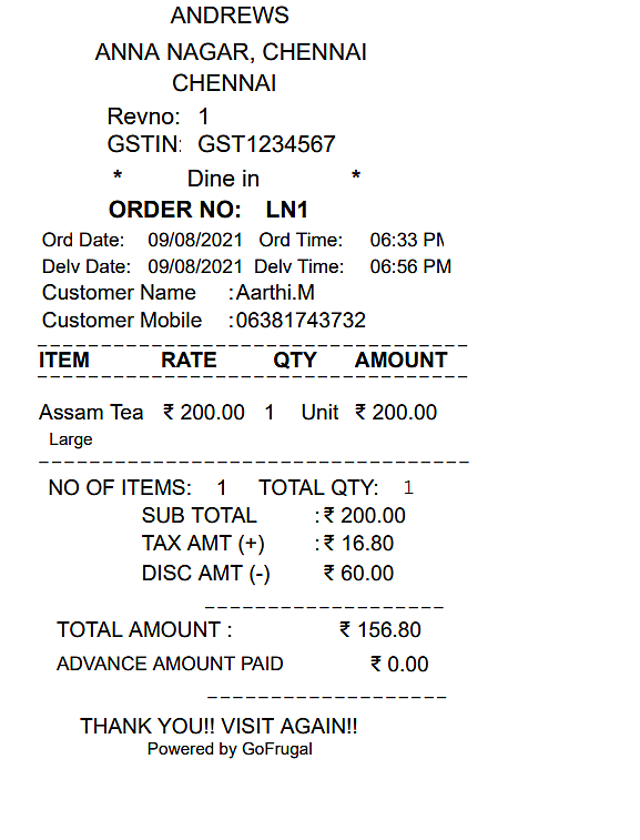 Step 6: Once the order accepted The Kot will be generated to respective kitchen.