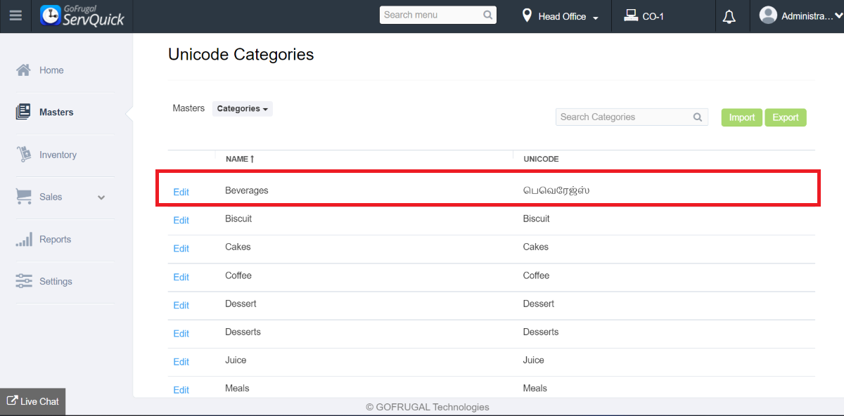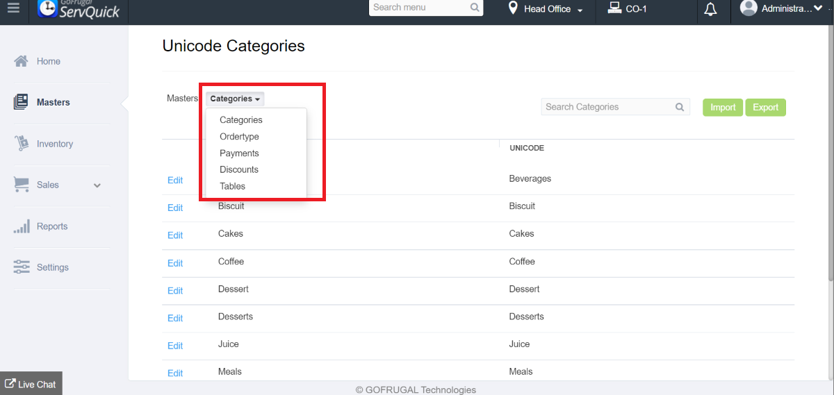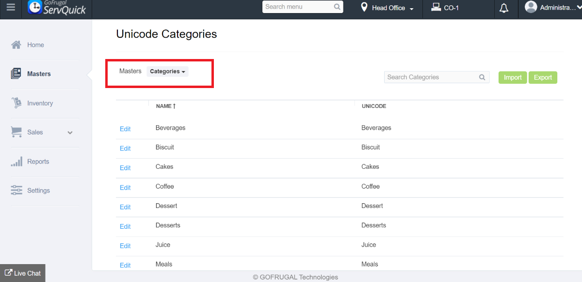 Step 1: Go to Masters->Unicode->Unicode Master->Unicode category