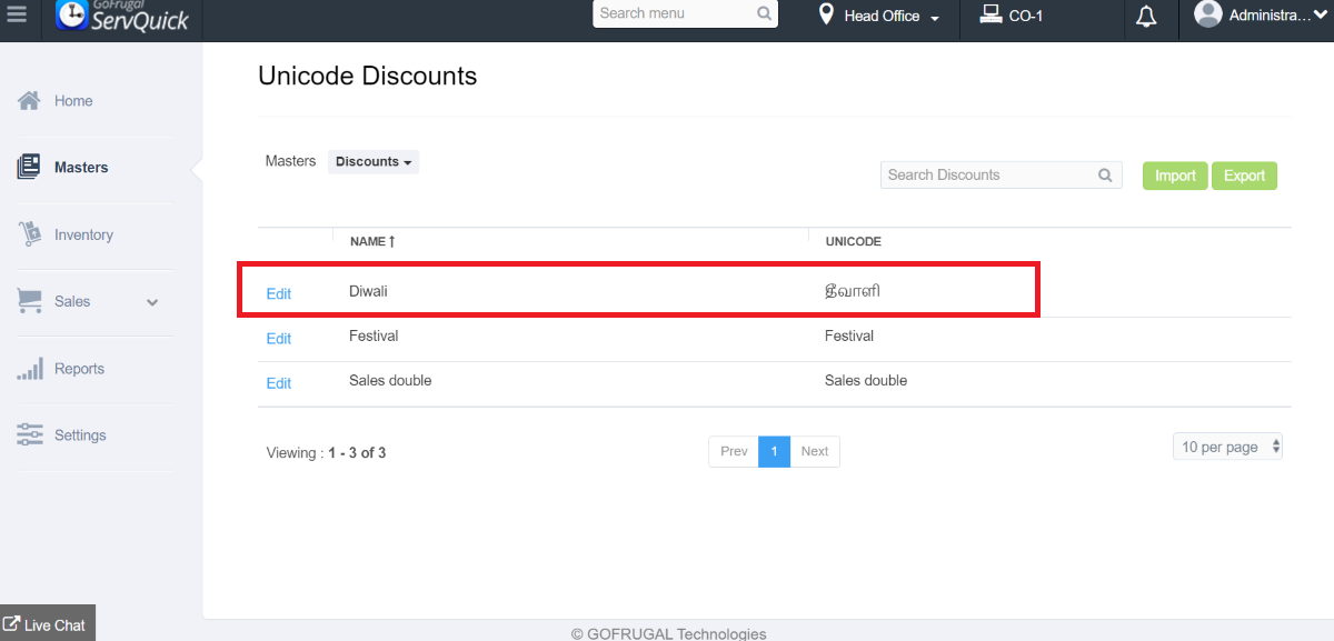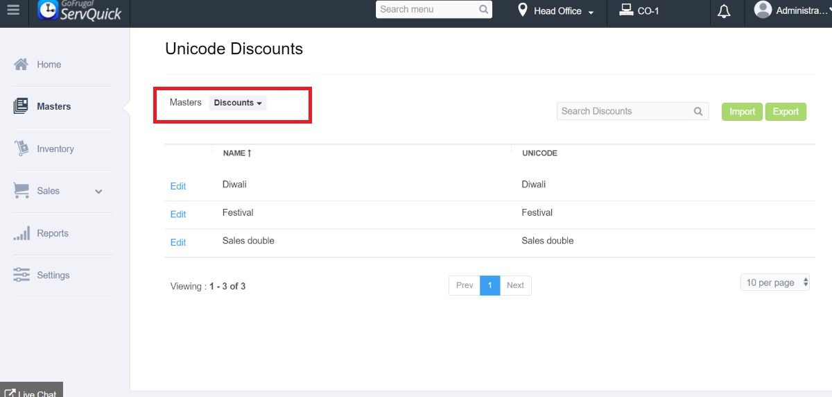 Step 1: Go to Masters->Unicode->Unicode Master->Unicode Discount.