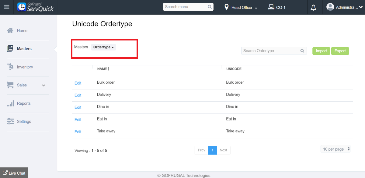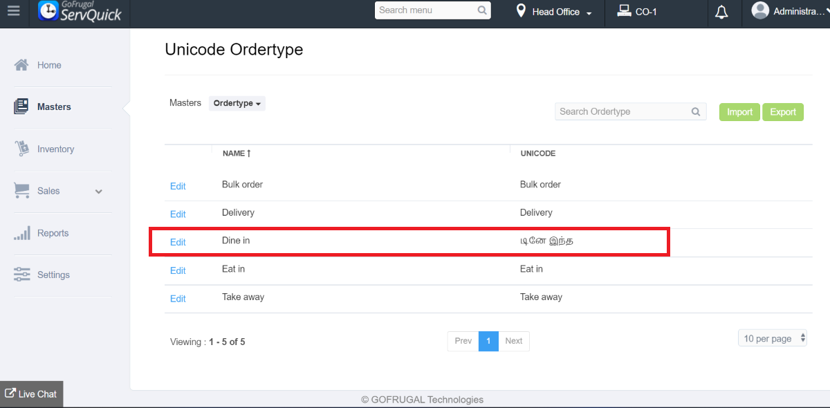 Step 1: Go to Masters->Unicode->Unicode Master->Unicode ordertype