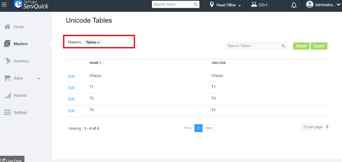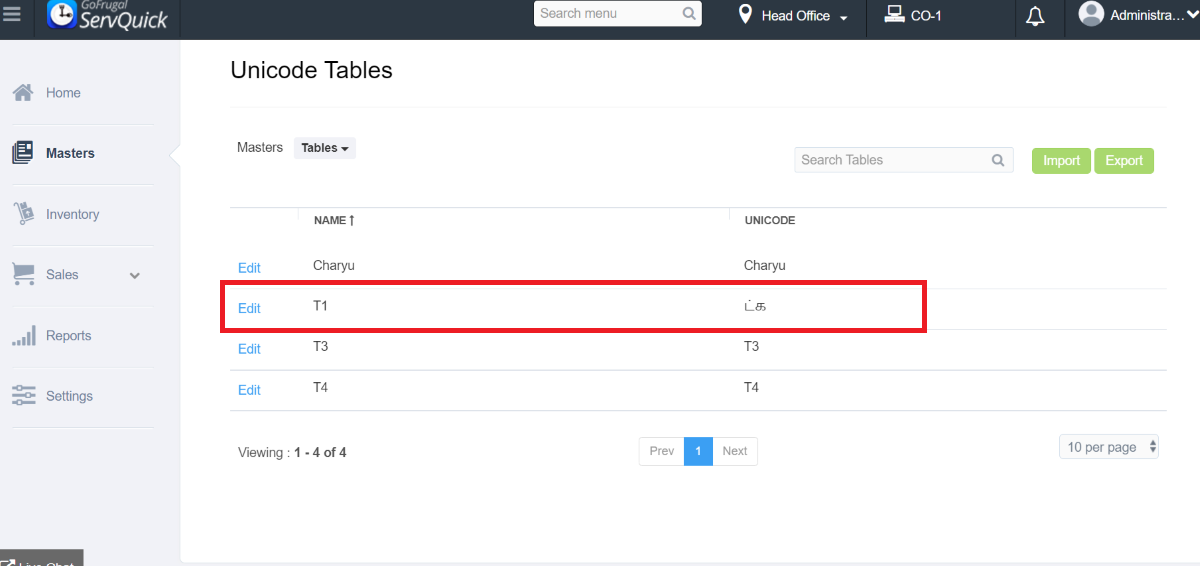 Step 1: Go to Masters->Unicode->Unicode Master->Unicode Table