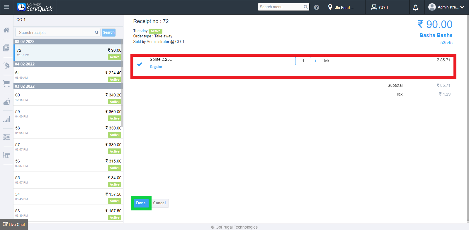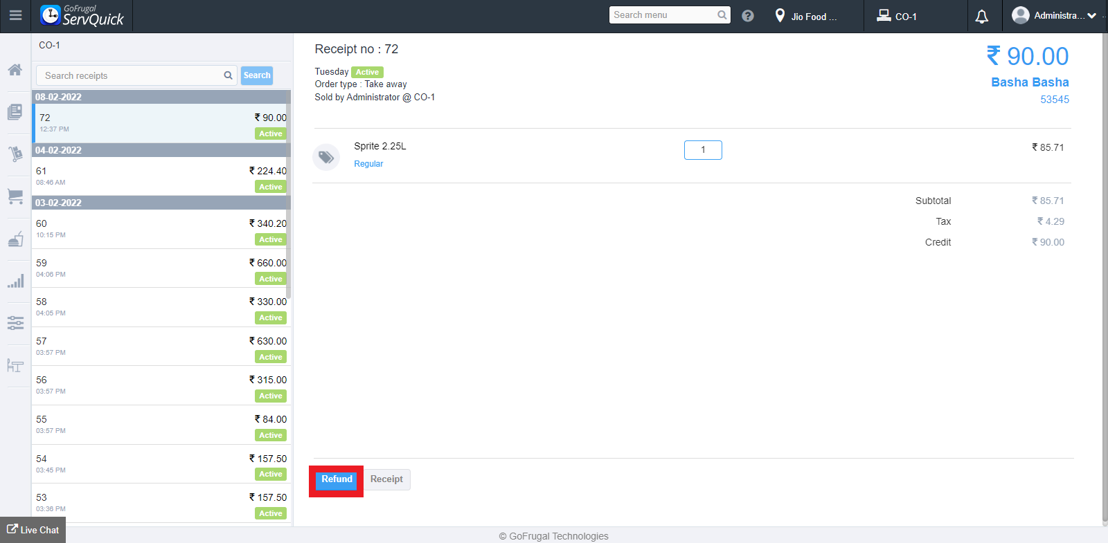 Once you click "Done", the status of the receipt will be marked as "Refunded".
