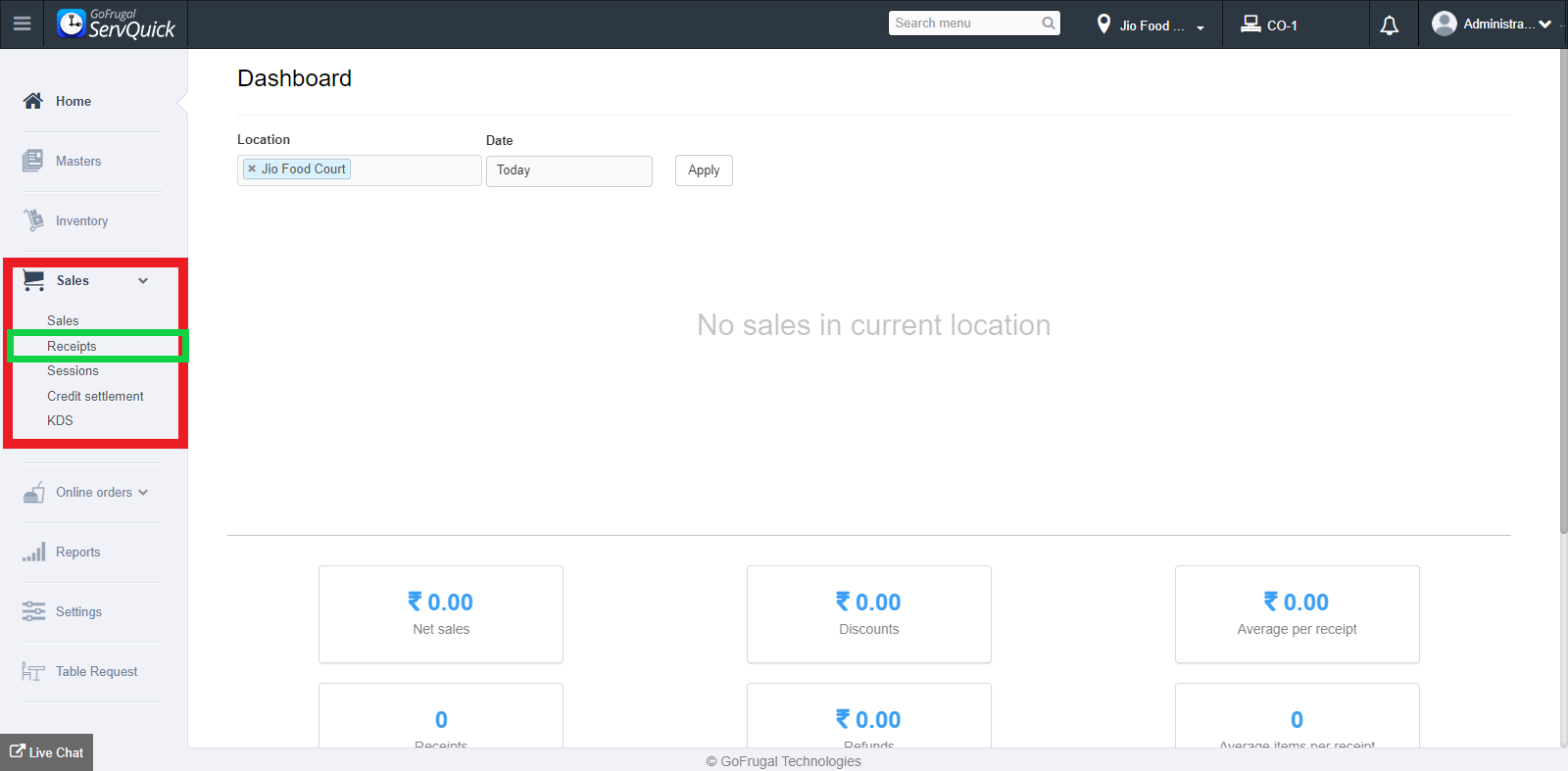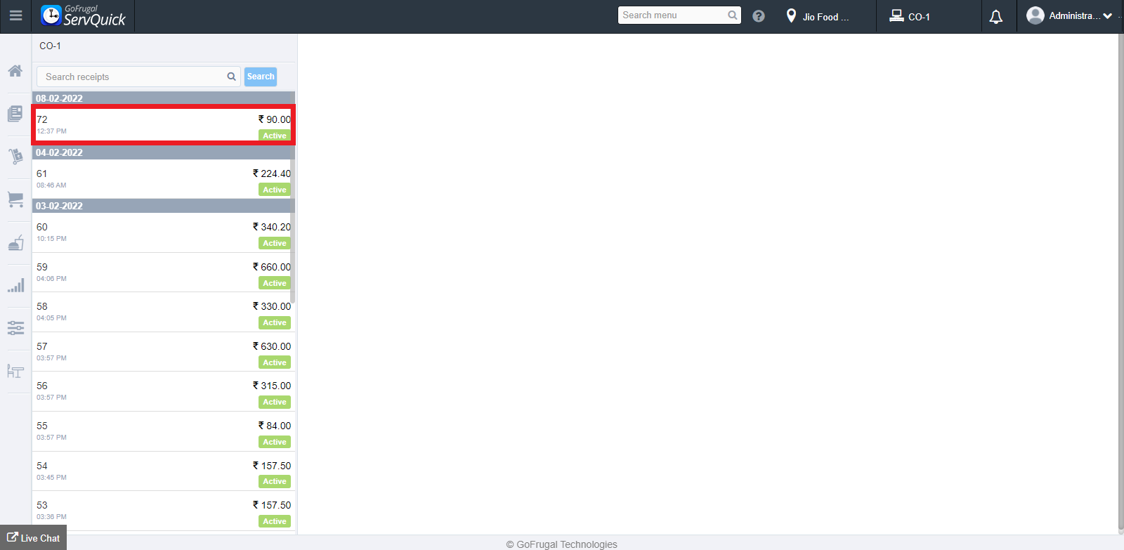 To view all the sale receipts that have been generated