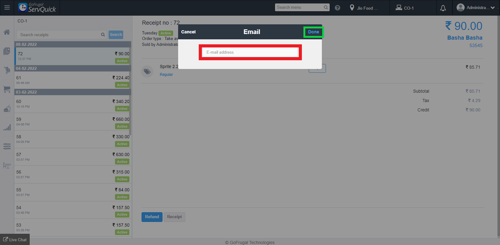 Step 2: Enter the valid email address where you wish to send the receipt and click on Done.