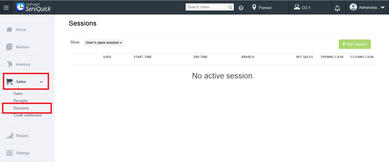 Step 1: Go to Sales->Sessions