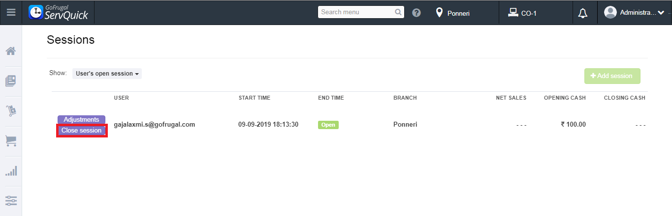 Session management is a feature in Servquick which helps to track cash in the drawer. This also helps to avoid theft in the store by managing sessions effectively.