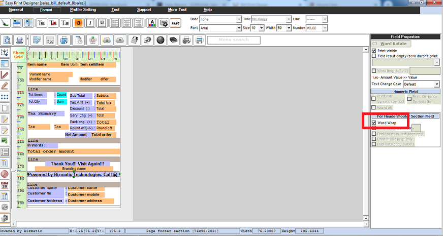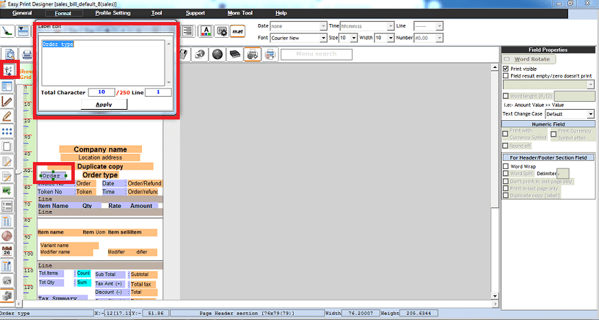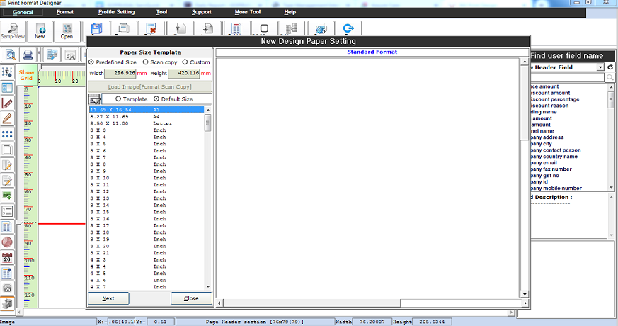 Step 5: To add a field in the template. Fields can be added in the header, detail and footer details