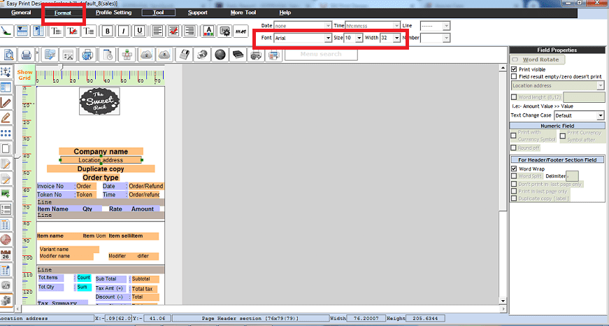 Step 3: Go to the Bill design. Choose the profile and template and Easy Print designer will be opened. Choose the downloaded template by clicking on Open Icon and design the bill as you want.