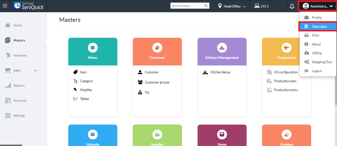 Purpose :- The purpose of the task is to remove existing master and transaction data from the point of sale (POS) system and implement a new menu setup. This process is carried out through the ServQuick web application.