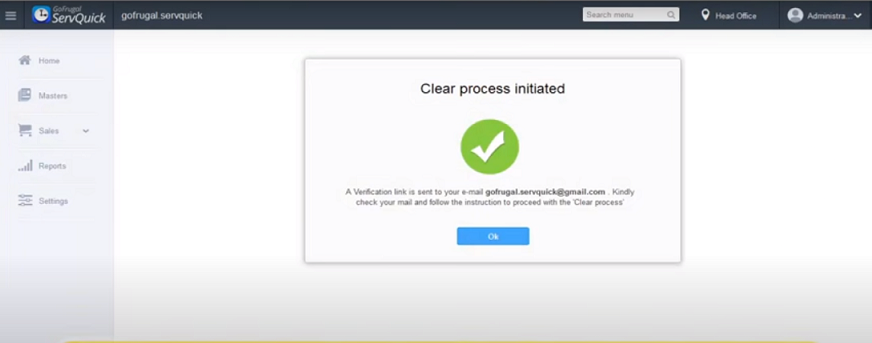 Step 4: Login to the registered email and click on the link and enter the password. Then select Yes to initiate the process. There will also be a check to ensure to clear the data, click on yes and proceed. The data will be cleared in some time and you can start the new menu setup