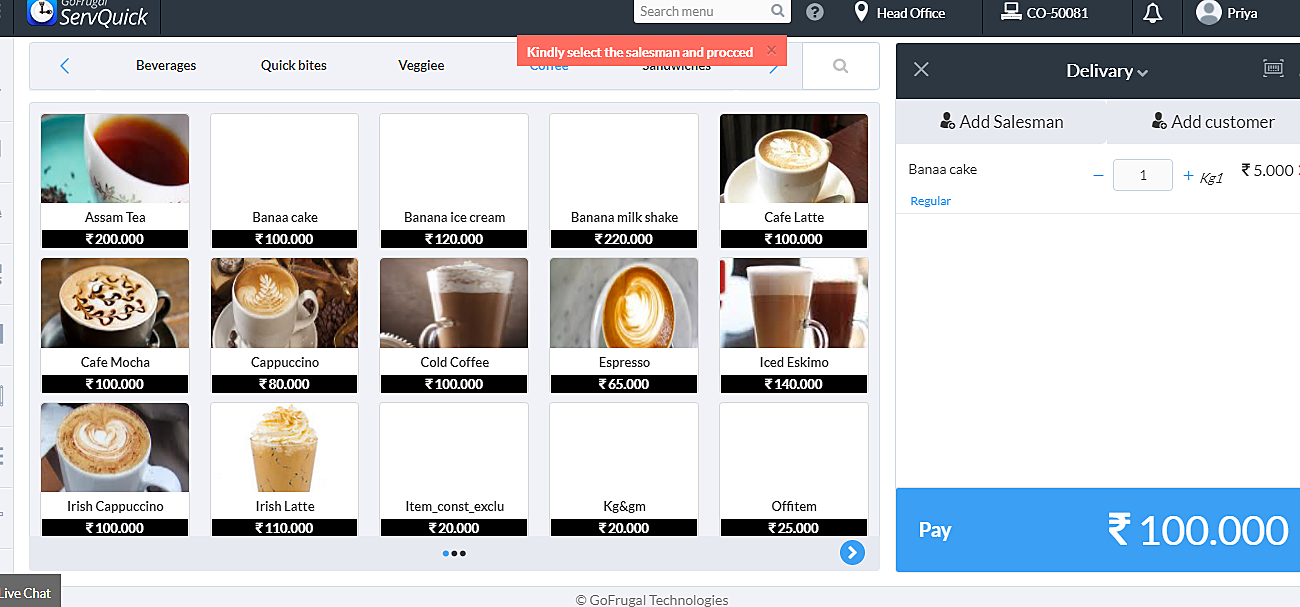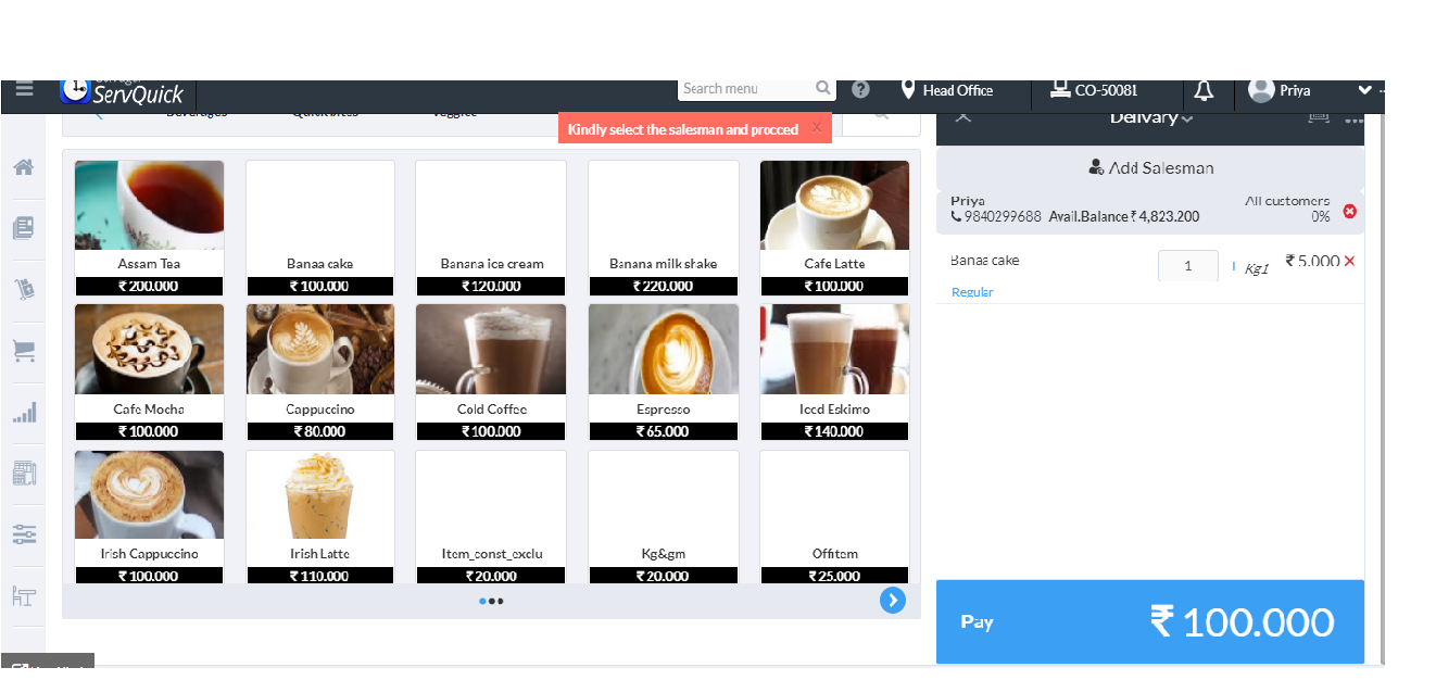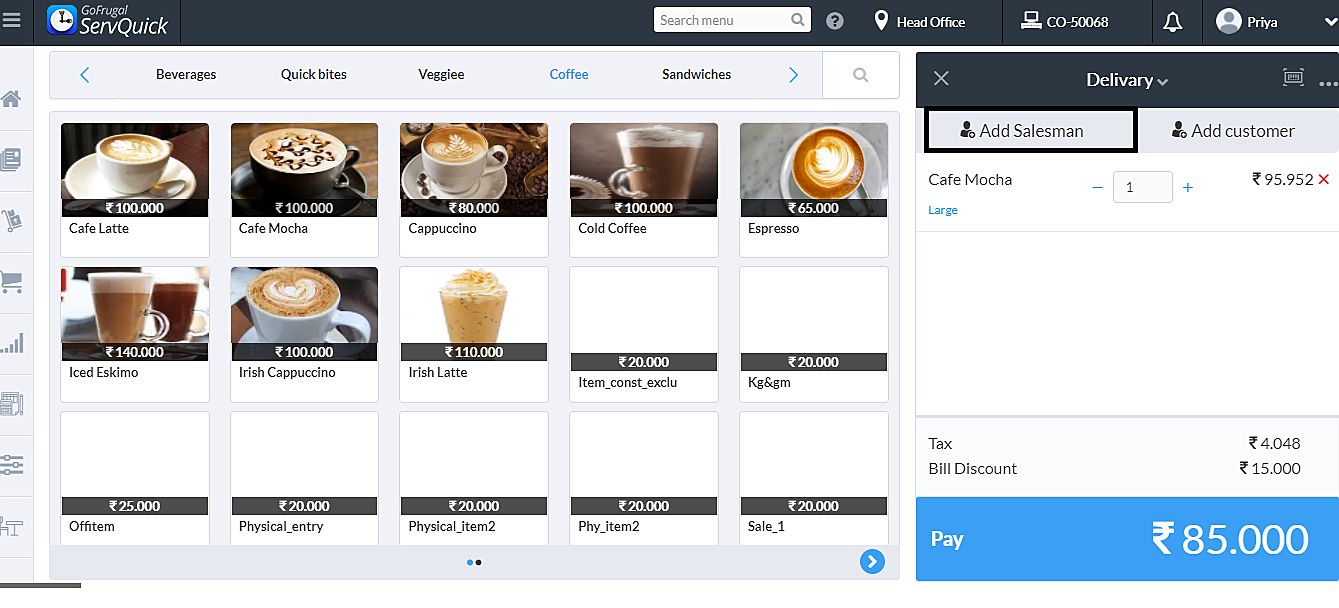 Step 4 : In Sales screen the cashier can now add the salesman and then proceed on the payment.