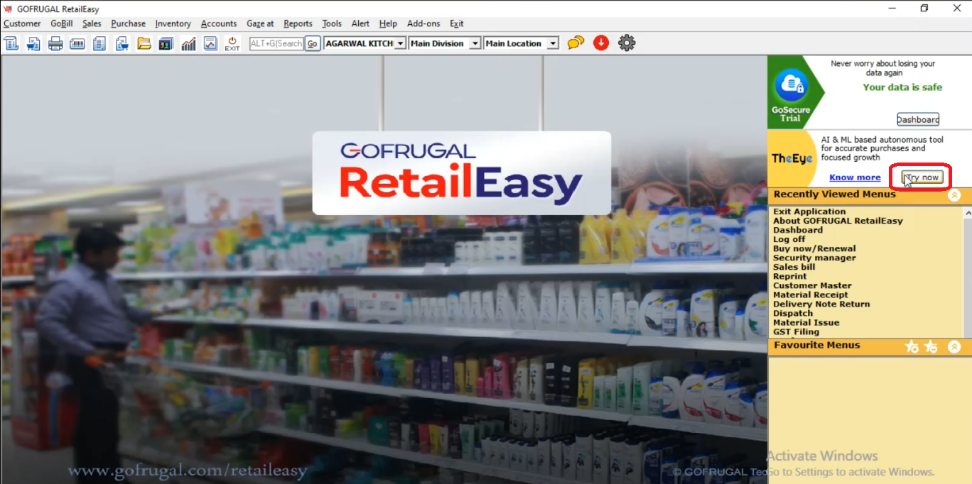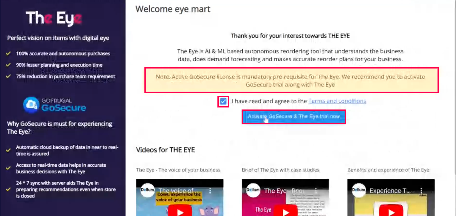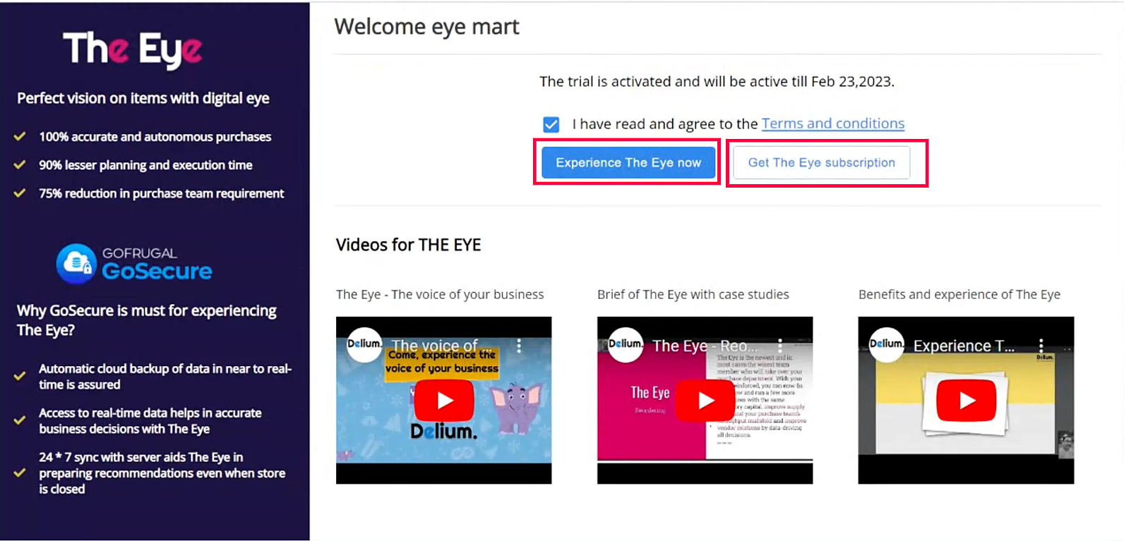 Flow 1: Activating The Eye trial from Gofrugal POS
