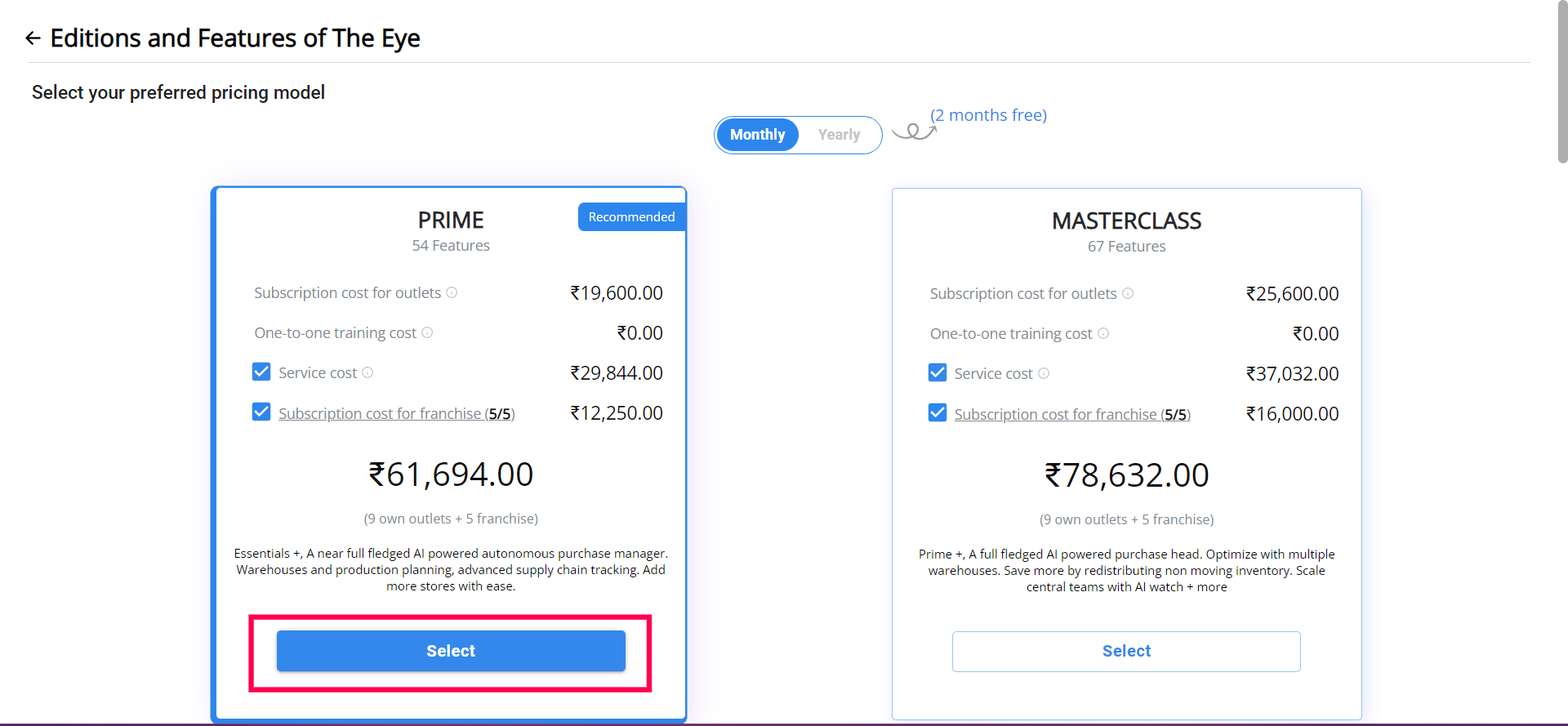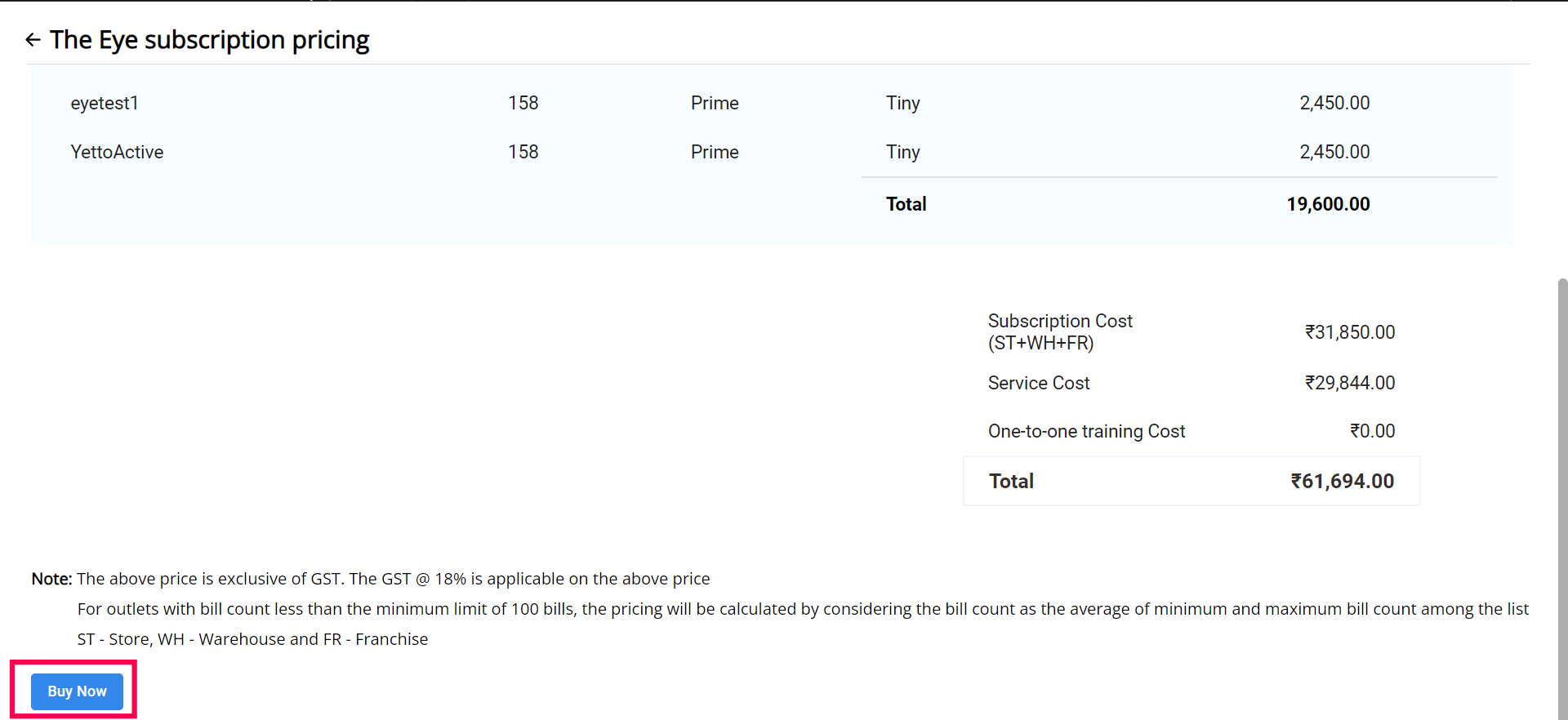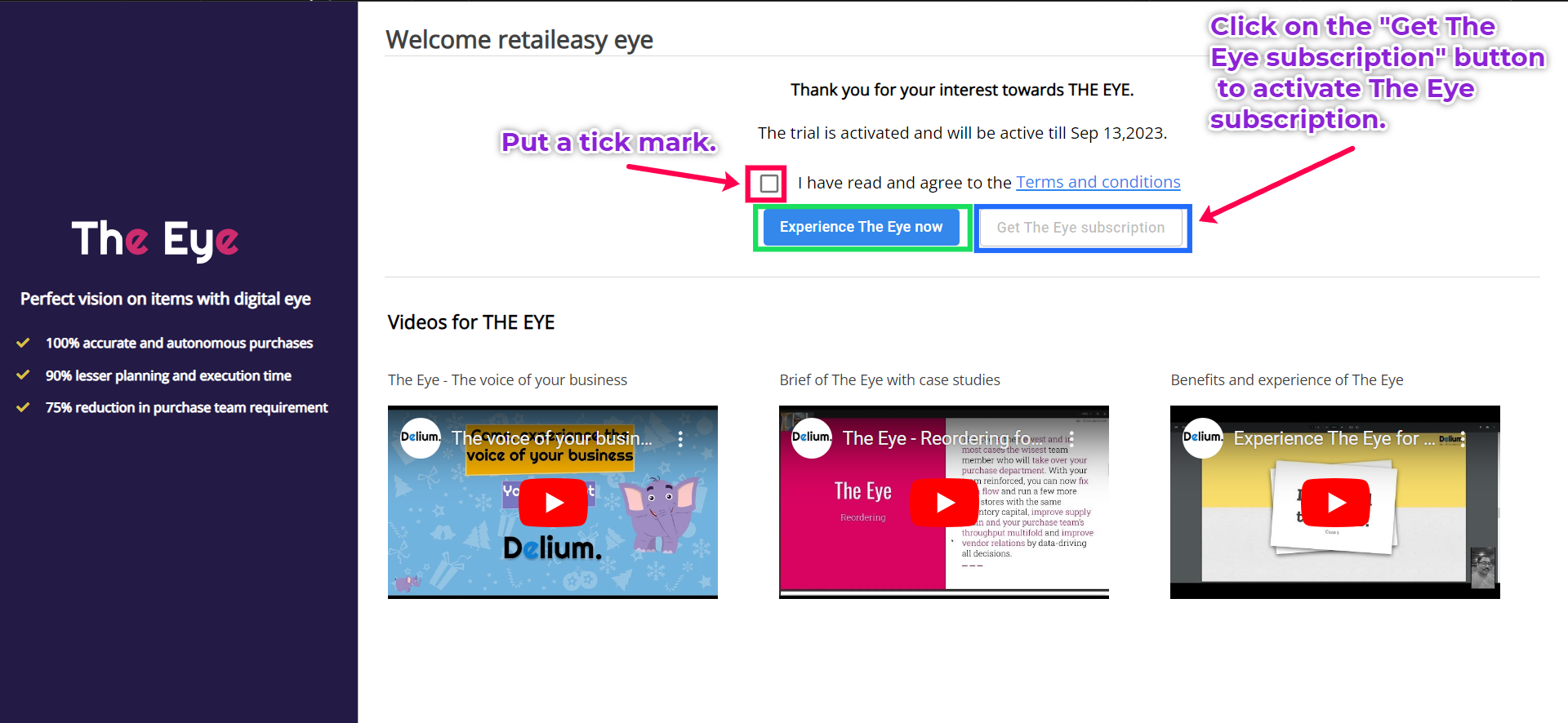 Click on Buy Now and then put a tick on the check box and then click on the "Get The Eye subscription" button to activate The Eye subscription.