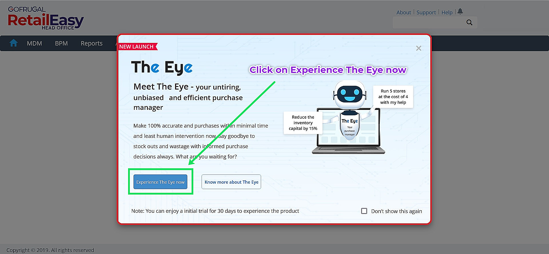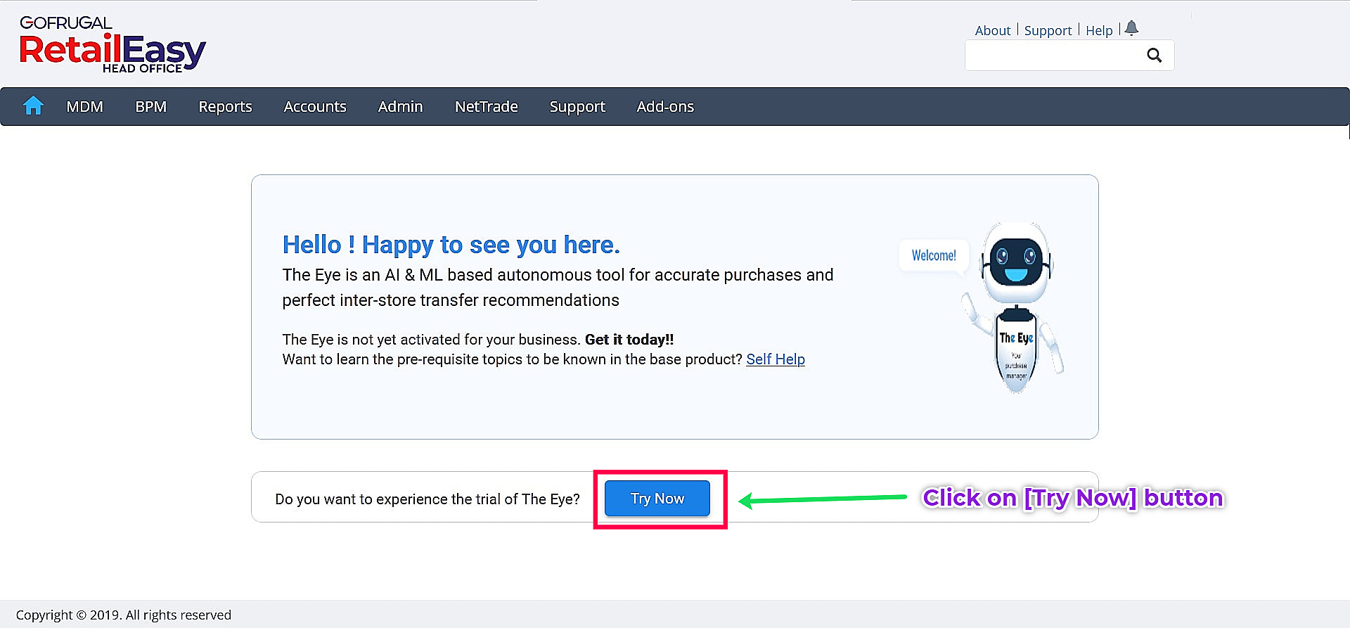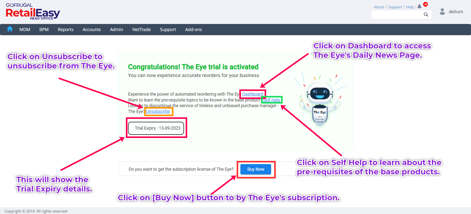 *** Note: Alternatively, we can navigate with Add-ons > The Eye to go to the trial activation page.