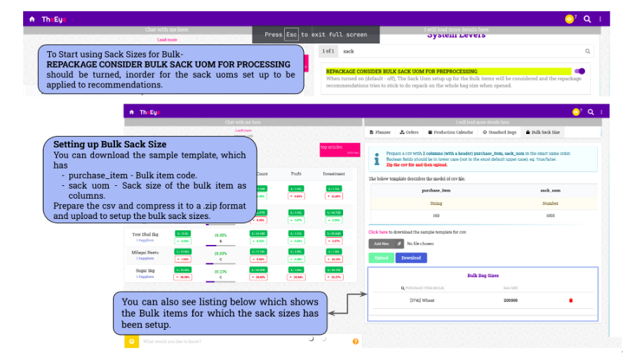 For the Bulk items with the sack UOM’s setup, The Eye tries to recommend the quantity of the repacked variants to consume the whole of the sack as much as possible.