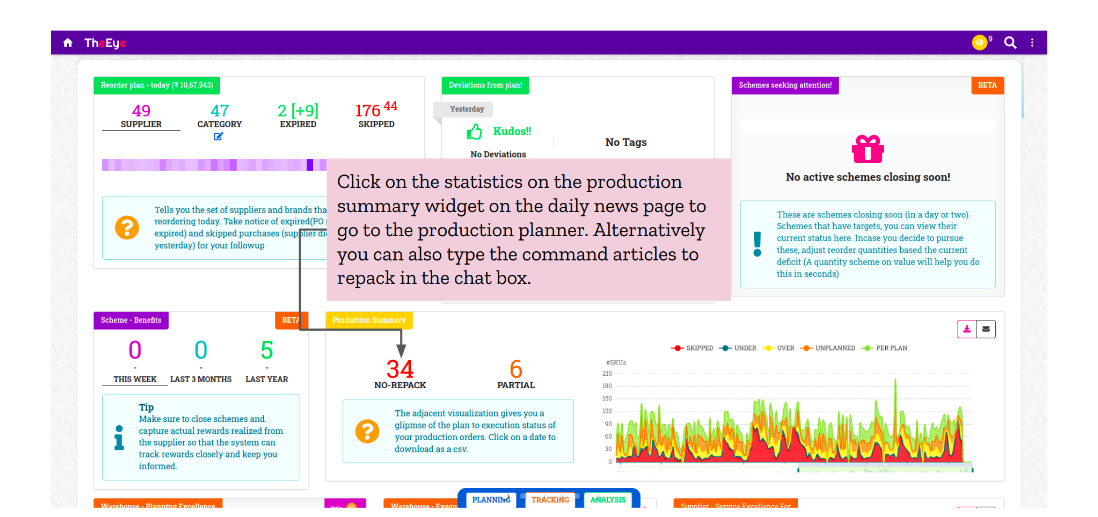 If you deal with private labelled brands, you are sure to perform periodic production at your warehouse for those sets of products. These products are then stocked in your warehouse and then set to your stores as and when demand mandates. Production as a process is optimal only when done in batches as it requires you to position the required machinery and people to execute.