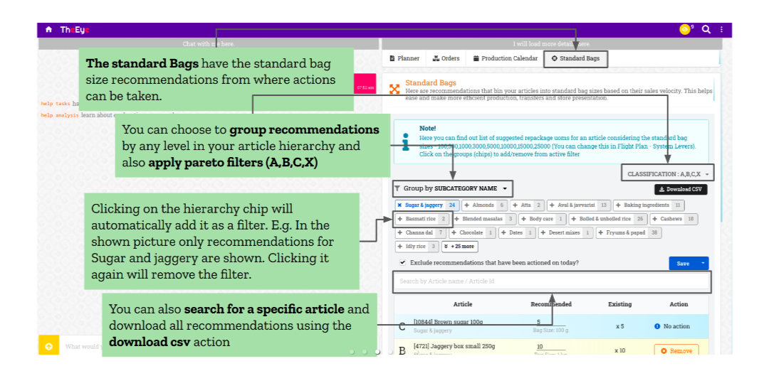 Keep in mind that UOM recommendations accepted today will only be effective tomorrow. With this setup, The Eye will ensure that happens in standard bag sizes. You have just simplified and cut off more than 80% of time spent in picking and stocking operations at your warehouse