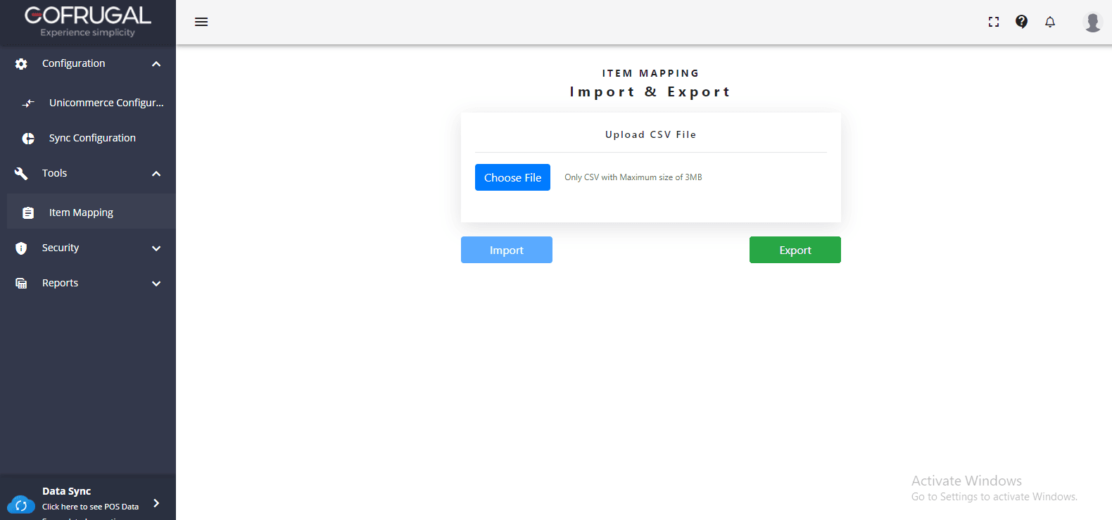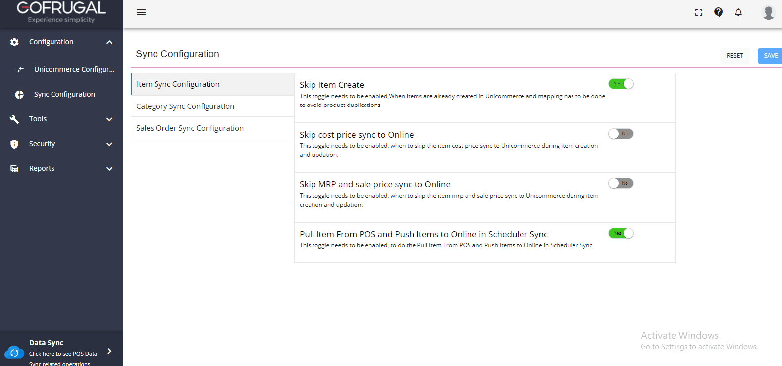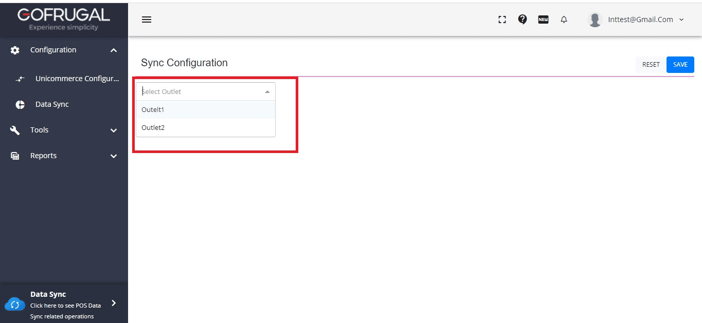 Open the Data Sync (Sync Configuration) section in GOFRUGAL POS.